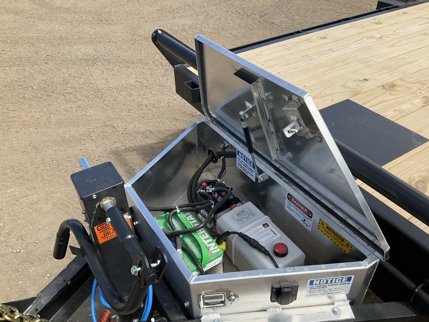 15,120LB GVWR, 2 7000LB Axles with Easy Lube Spindles and Slipper Spring Suspension, 16 Inch Radial Tires, Galvanized Rims, Electric Brakes on Both Axles, 12,000LB Drop Leg Jack, Electric Over Hydraulic Full Tilt, 3 Inch Hydraulic Cylinder, Interstate Extreme Cycle Battery, Lockable Aluminum Toolbox, 24 Inch Deck Height, Pressure Treated Wood Floor, 52 Inch Tongue Length, Stake Pockets and Rub Rails, 4 HD D-Rings, Spare Tire Mount, Rubber Mount Sealed LED Lighting, Full Sealed Wire Harness, HD Treadplate Fenders