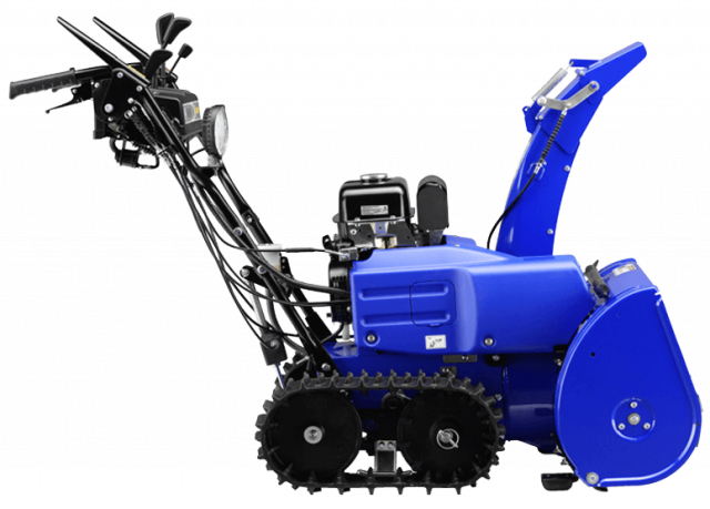 | Rubberized track drive system plows through snow conditions that stop other blowers cold. Track drive provides superior traction on steep driveways or laneways and also makes it possible to climb stairs. The tracks are 130 mm (5.1") wide. Wheeled blowers don't even compare. |