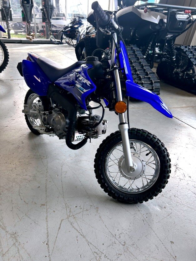 Our littlest TT-R 50 made to teach the thrill of riding boasts big YZ styling, four-stroke power, a three-speed automatic transmission, adjustable speed restrictor and it even comes with a push-button for electric start. The fun starts here so go ahead... play in the dirt!
