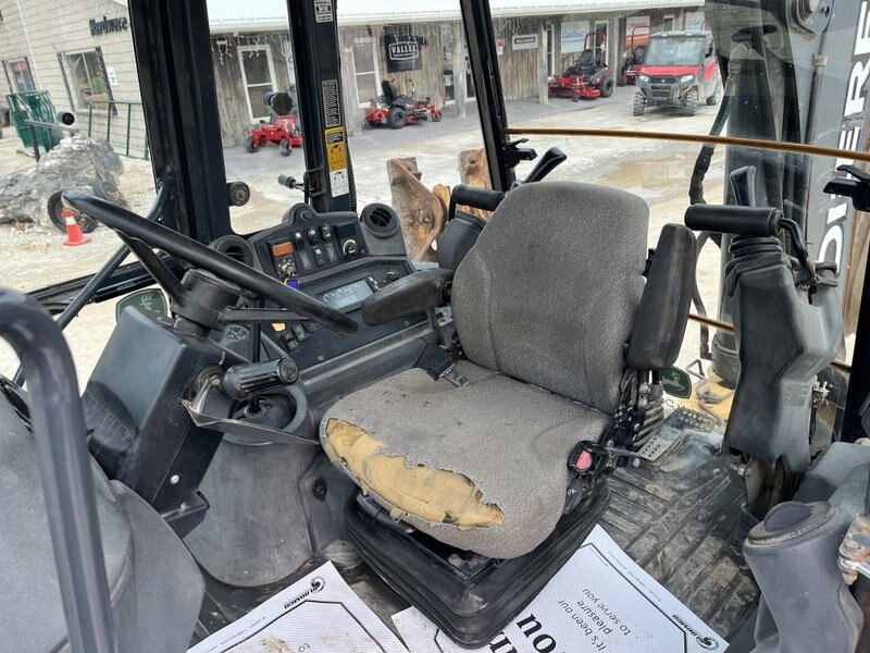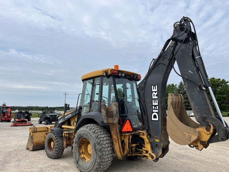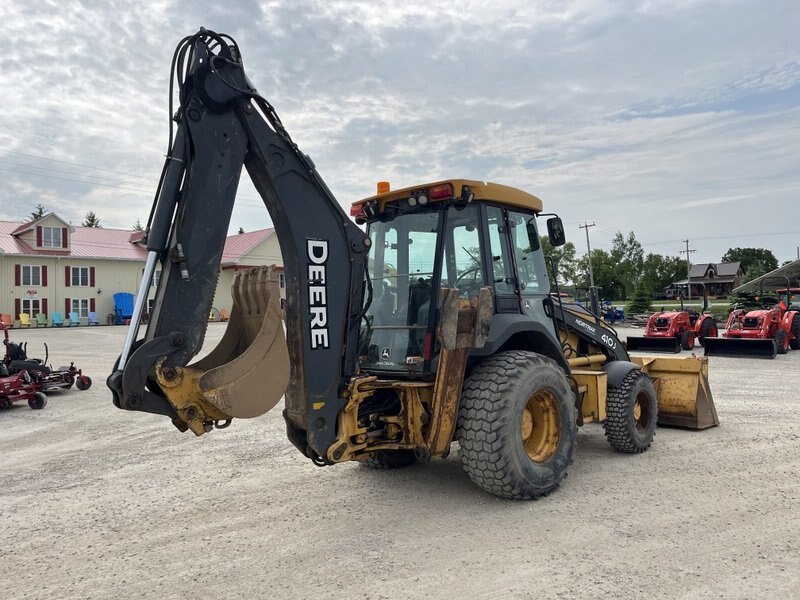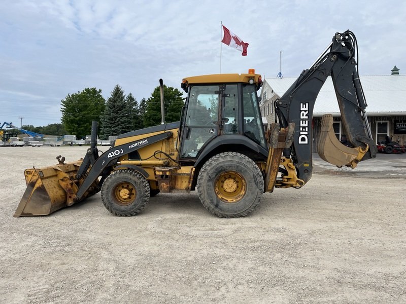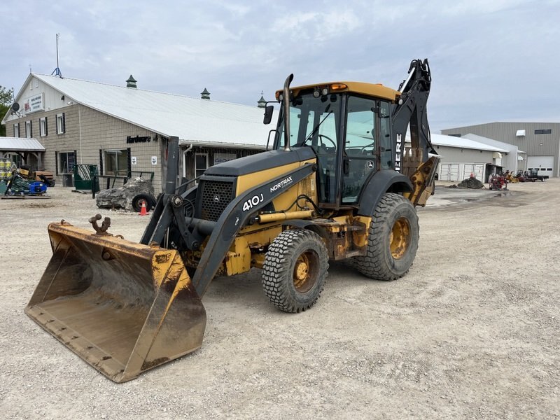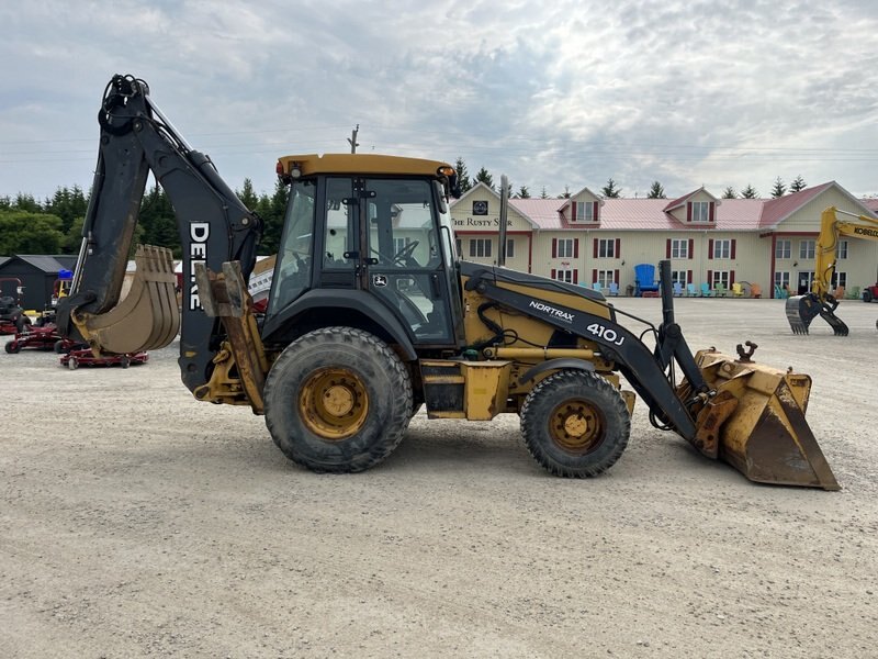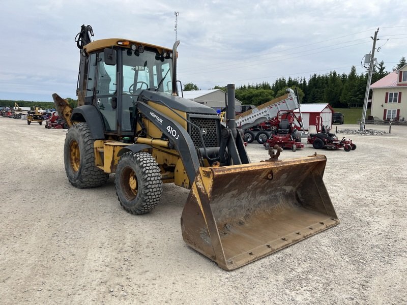 2012 John Deere 410J is powered by a 98hp John Deere diesel engine. Unit is equipped with front hydraulic quick connect. Enclosed heated cab with all glass intact and a c. 4 wheel drive with 4 speed transmission. Unit is extendahoe with pilot controls. Machine is equipped with rear auxiliary hydraulics with manual wedge coupler. Operating weight is about 20,500lbs. Hour meter reads 11132.