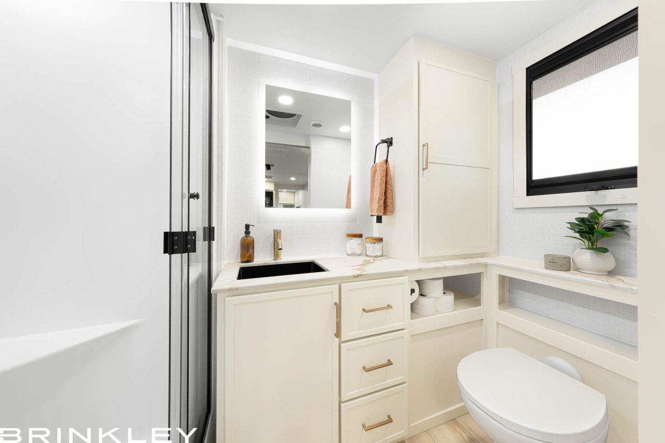 Brinkley’s signature premium residential features & construction include Brinkley’s signature CraftSense™ wood trim, dovetail drawers, solid surface countertops, and the iconic pull-out trash and paper towel caddy