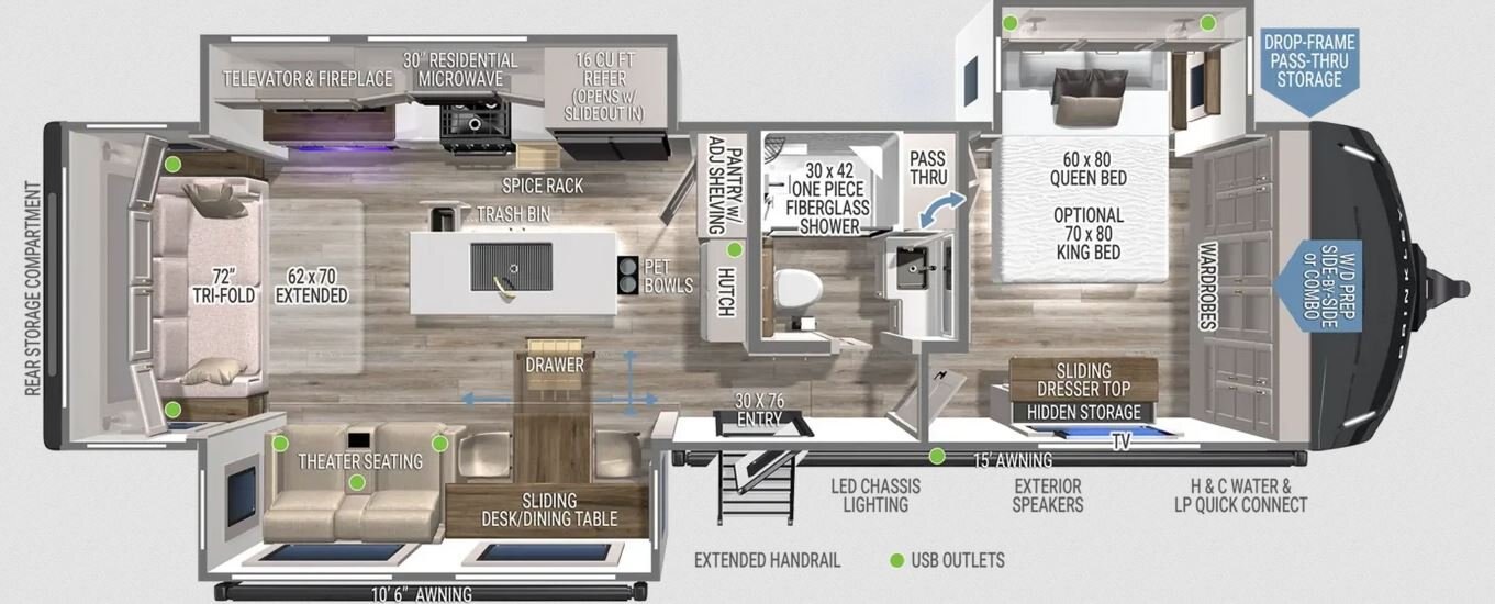 - Maximum Exterior Storage: Massive Pass-through Bay