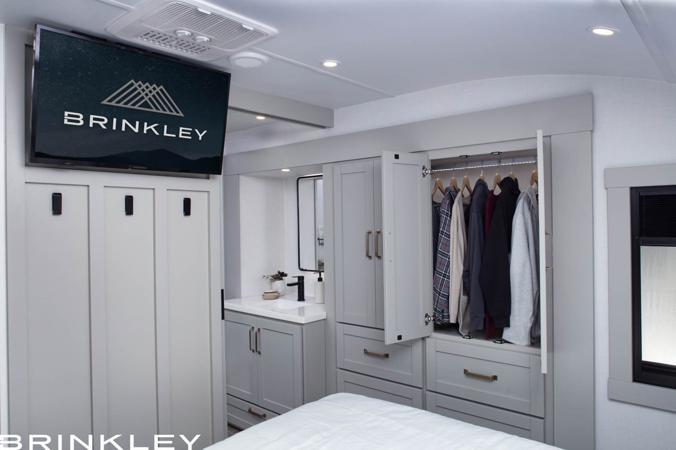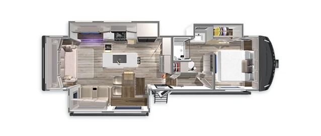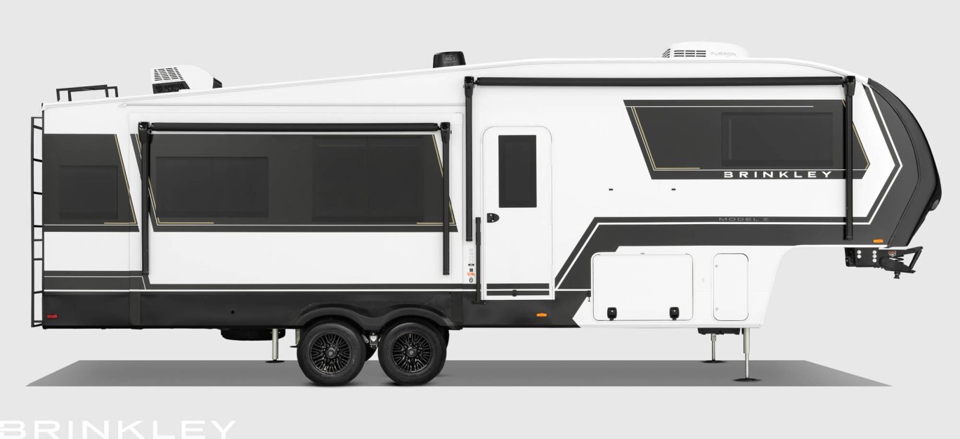The Brinkley Model Z – Mid-Sized Luxury Fifth Wheel is in a class of its own… Featuring an automotive exterior with a residential interior, yielding NO COMPROMISE. It’s destined to change the RV ownership experience. Whether you’re a weekend camper or a full-time RVer, Model Z offers features and amenities that will appeal to all camping enthusiasts. From 7k axles, 17.5” H-rated Cooper tires, flush floor slides, and a class-leading 79.5″ bed & bath interior height, to name a few. The Model Z has a combination of high-end features unheard of on a Mid-Size Fifth Wheel.