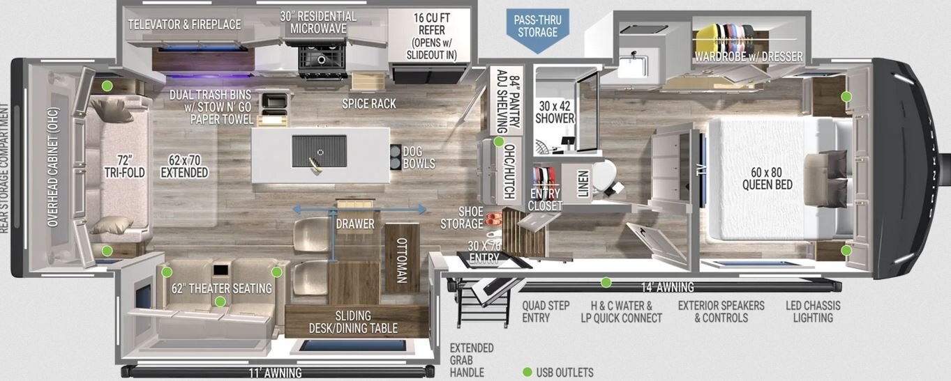 - Maximum Exterior Storage: Massive Passthrough & Rear Storage