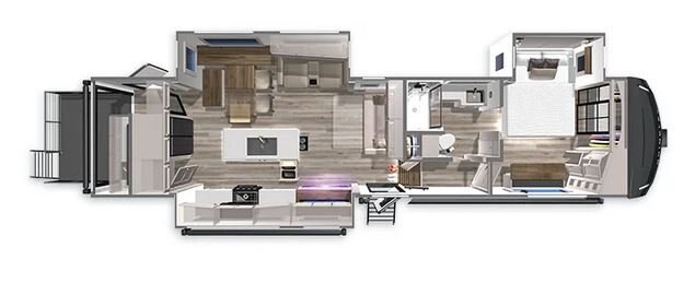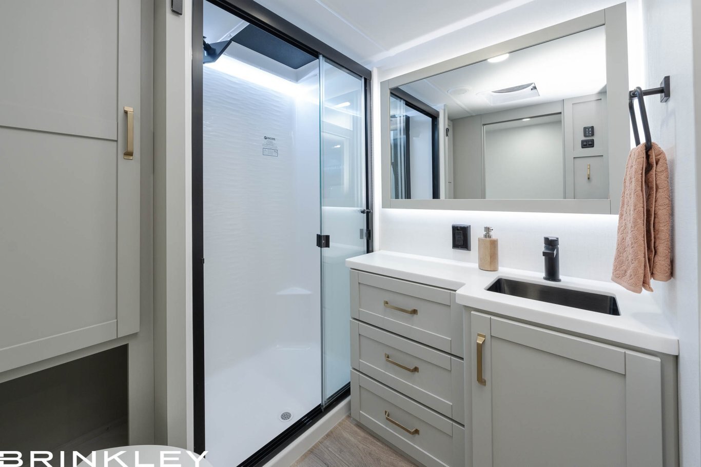 The Brinkley Model Z – Mid-Sized Luxury Fifth Wheel is in a class of its own… Featuring an automotive exterior with a residential interior, yielding NO COMPROMISE. It’s destined to change the RV ownership experience. Whether you’re a weekend camper or a full-time RVer, Model Z offers features and amenities that will appeal to all camping enthusiasts. From 7k axles, 17.5” H-rated Cooper tires, flush floor slides, and a class-leading 79.5″ bed & bath interior height, to name a few. The Model Z has a combination of high-end features unheard of on a Mid-Size Fifth Wheel.