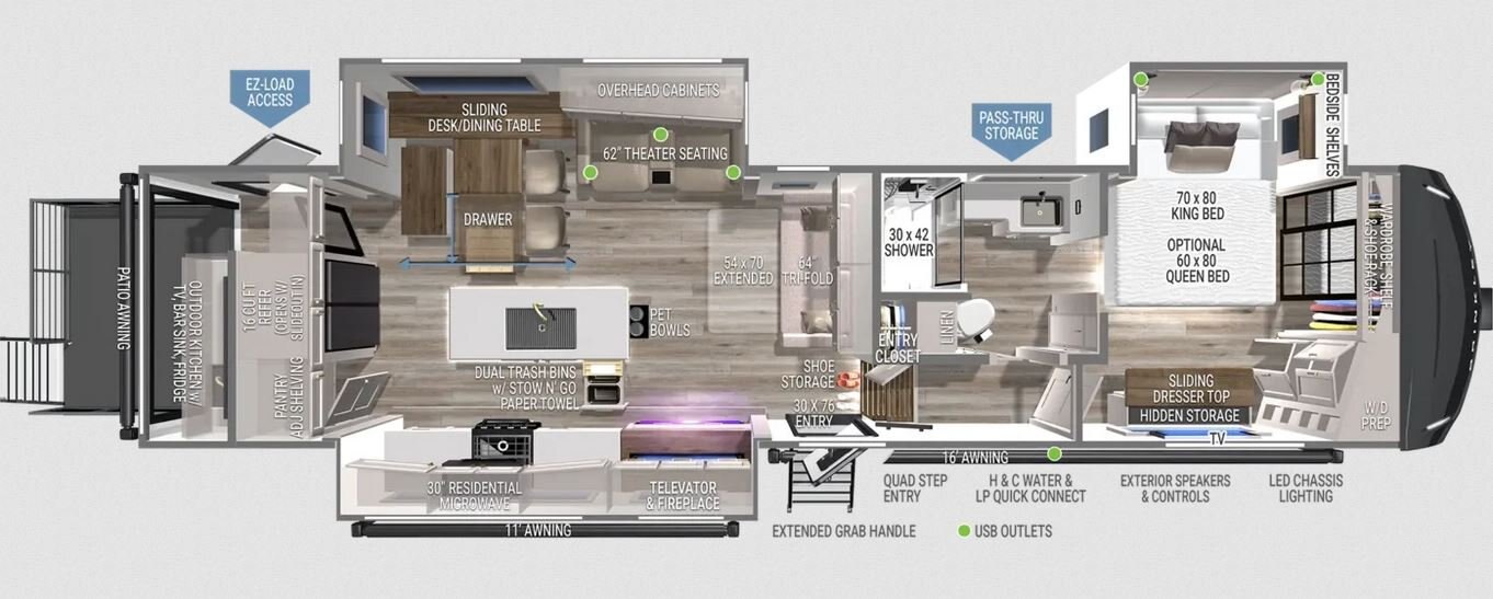 - Maximum Exterior Storage: Massive Passthrough & Rear Storage