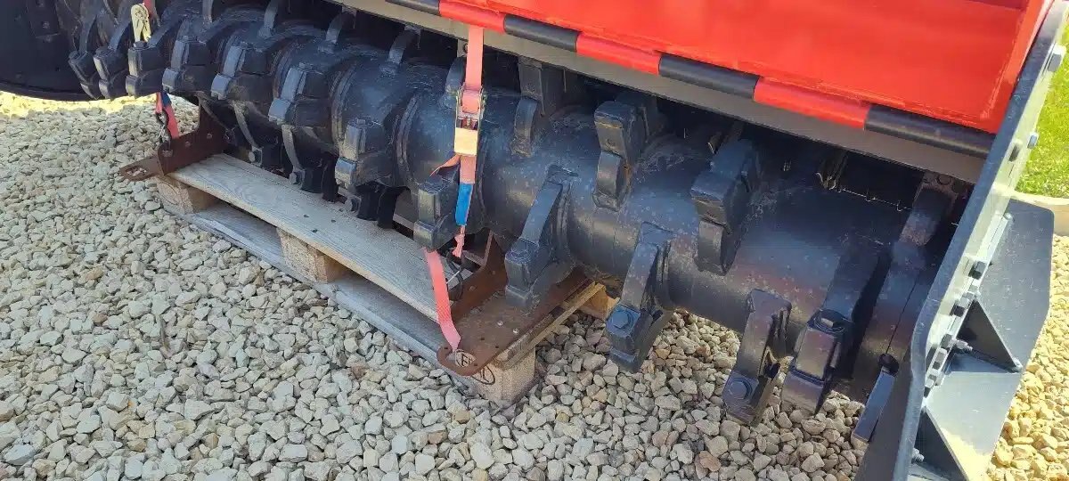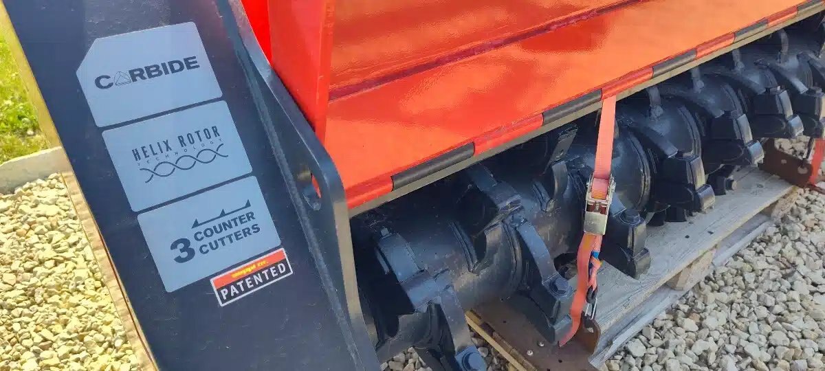 Cutting width 87", 1000 PTO, hydraulic door, helical rotor, carbide tips. Must have a creeper gear or a CVT transmission to operate.