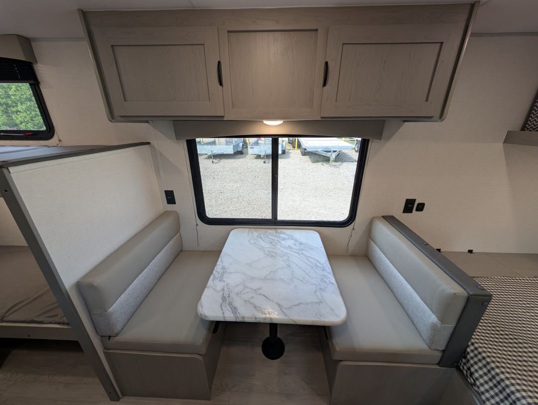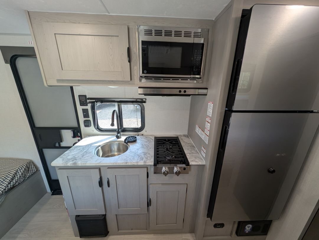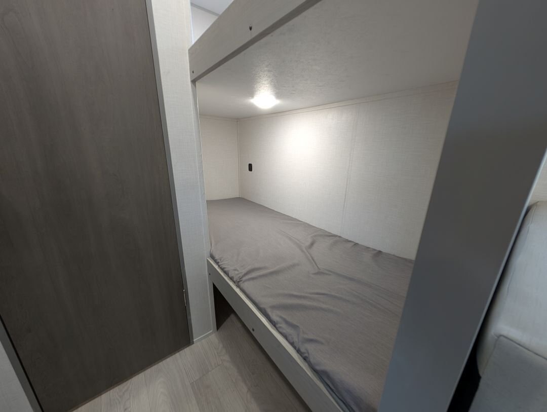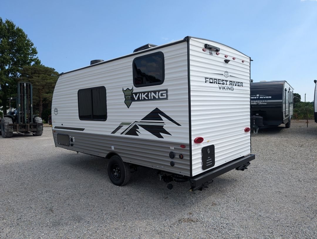 Looking for a compact, lightweight travel trailer packed with features? The 2026 Viking 17SBH has gotten TONS of upgrades this year and is perfect for weekend getaways or extended trips. This Viking travel trailer combines function, quality, and value in one towable package. A top choice for couples or small families ready to explore the great outdoors. Designed for easy towing and maximum comfort, this bunkhouse model offers premium features at an unbeatable value. NEW IN 2026: All appliances upgraded to General Electric. 10 cu. Ft. fridge upgrade, energy-efficient tankless on-demand water heater, thermofoil countertops, AND MORE This unit includes the following options: Camping Made Easy Package: Enjoy hassle-free setup and comfort with solid entry steps, power awning with LED lighting, foot-flush toilet, black tank flush, battery disconnect, smooth metal front, solar prep, magnetic baggage door latches, USB charging ports, backup camera prep, friction-hinge entry door, omni-directional TV antenna, 12V bathroom vent fan, LCI ladder prep, and more. Quality & Appliance Package: Includes a large 10 cu. ft. GE 12V refrigerator, stainless steel GE 2-burner cooktop, microwave, 13.5K BTU roof-mounted AC, 20K BTU propane furnace, and an energy-efficient tankless on-demand water heater. Durable Construction: Built on a BAL NXG frame with powder coating and Huck bolt assembly, 5/8” tongue and groove plywood flooring, seamless one-piece TPO roof membrane, thermofoil countertops, and drop-edge finishes for long-lasting durability. Tow-Ready Essentials: Comes with a spare tire and carrier, electric brakes, easy-lube axles, and Canadian coding for compliance and convenience. Bonus Coverage: Includes RVIA and MVSA seals, plus Travel Easy Roadside Assistance for added peace of mind on the road.