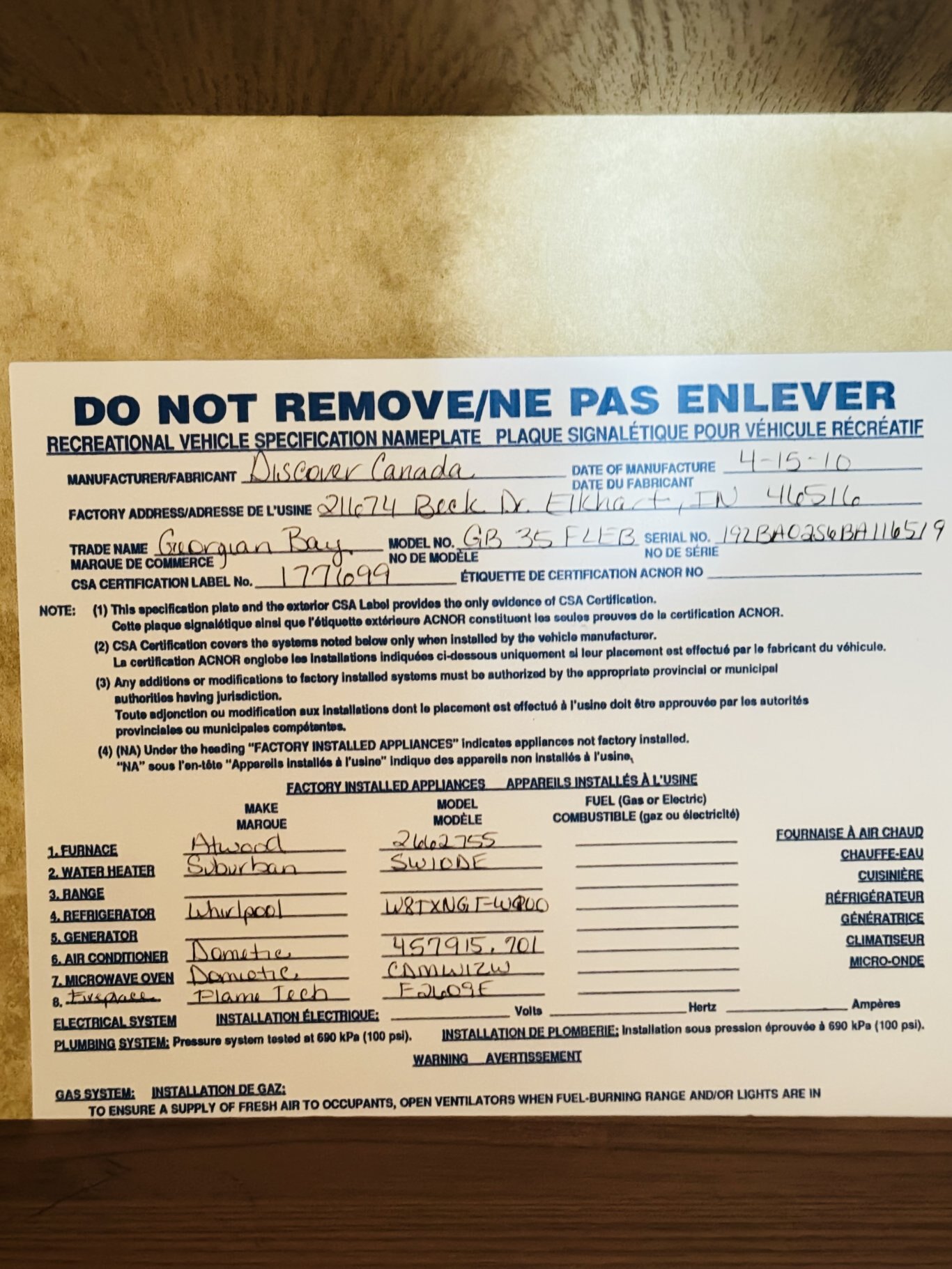 !!  2011 GEORGIAN BAY 35F – 2 Slide-Outs, Spacious & Comfortable  !!
