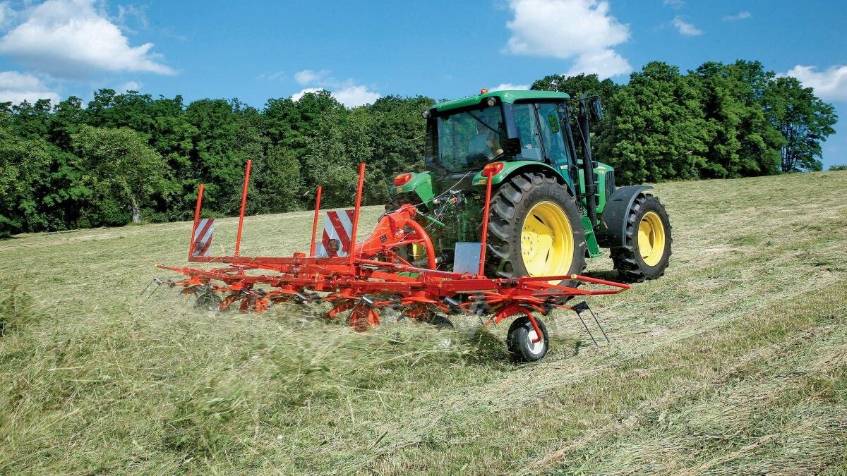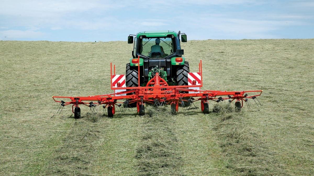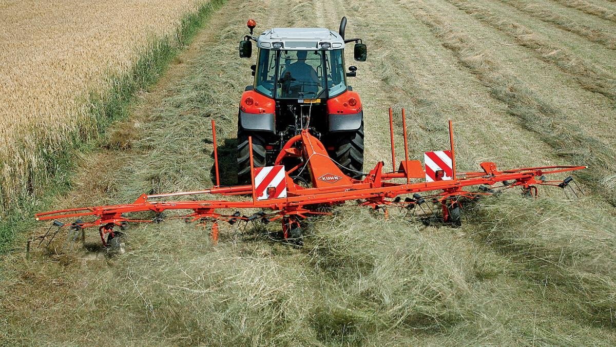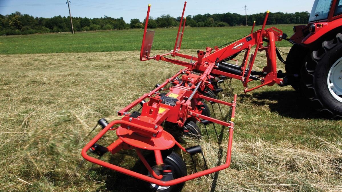 KUHN GF 1002 Series mounted tedders are designed to meet the needs of hay producers who demand the highest quality tedding of forage to ensure even and quick drydown. The GF 6502 and 7902, with small-diameter rotors are designed to excel at spreading short, thick crops. While the GF 7802, with slightly larger-diameter rotors, excels at spreading long, dense crops. The exclusive DigiDrive® coupling system provides low maintenance, long life and increased safety. The comfortable transport, ease of use and long life of these machines are just a few of the additional benefits. These models are available in working widths ranging from 21’4” to 25’7”. |