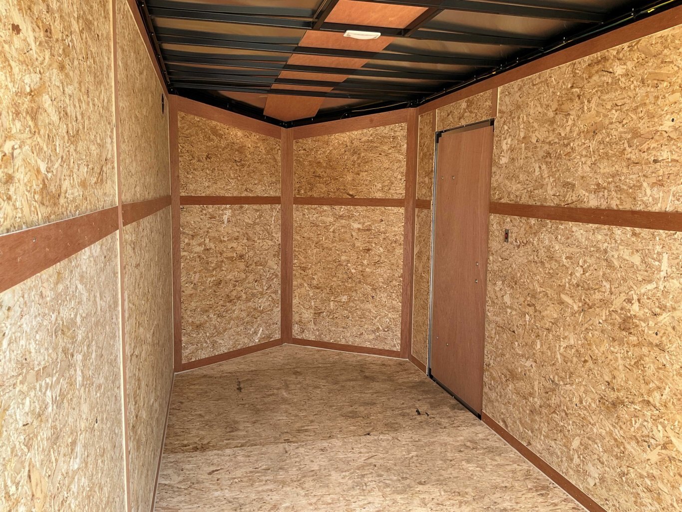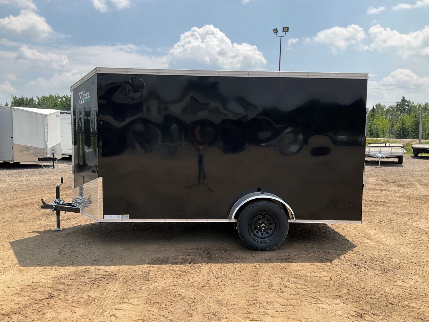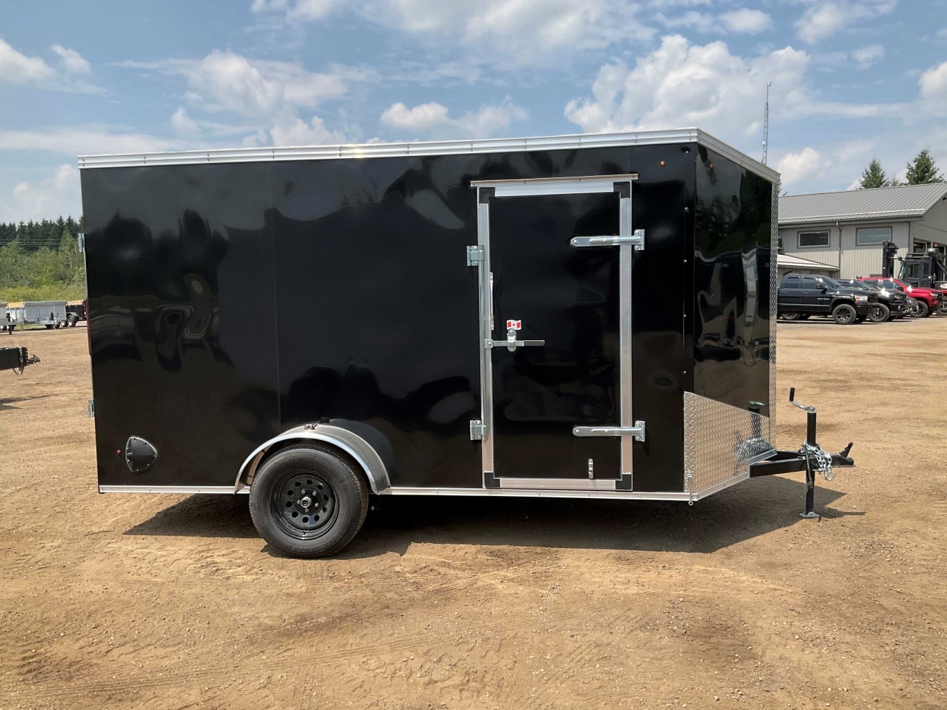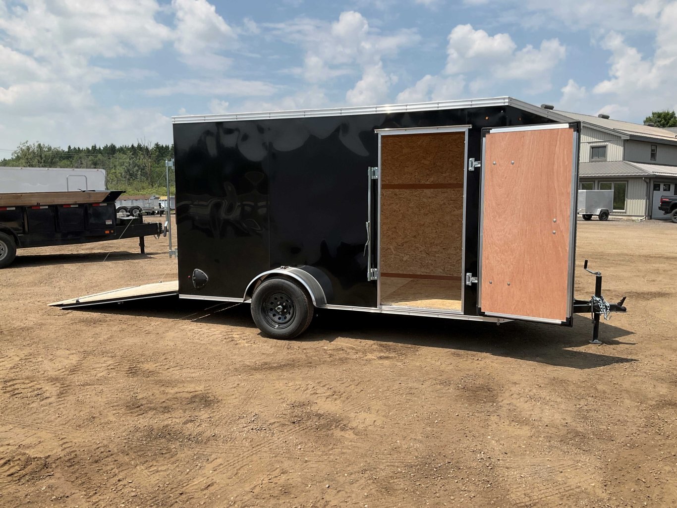 2990LB GVWR, 3500LB Spring Drop Axle with EZ Lube Hubs, 15 Inch Radial Tires, 2' Sloped V-Nose, 6'6" Tall, 32" Side Man Door, Rear Ramp Door with Cable Assist, 3/8" Wood Lined Walls, 3/4" Marine Grade Floor, Seamless Aluminum Roof, 16" On Centre Walls/Floor/Roof, 2 Wall Vents, 12V Dome Light and Switch, ATP Stone Guard, 2" Ball Coupler, A-Frame Tongue Jack with Sand Pad, Sealed LED Lighting