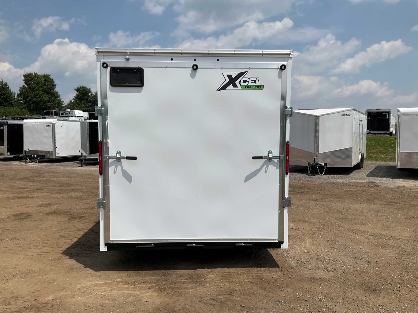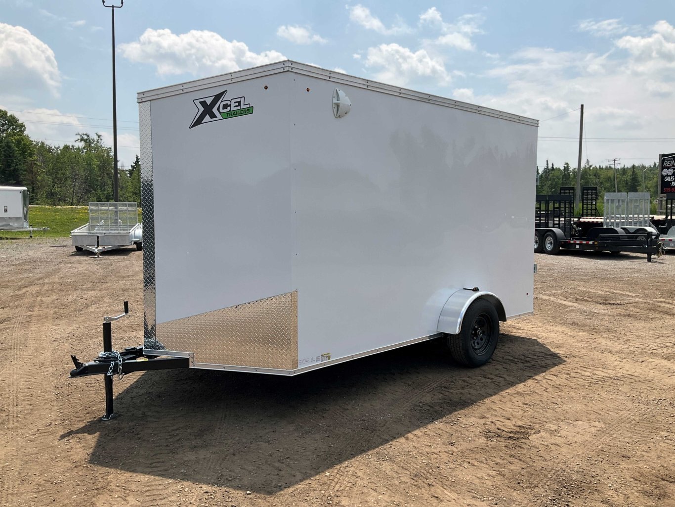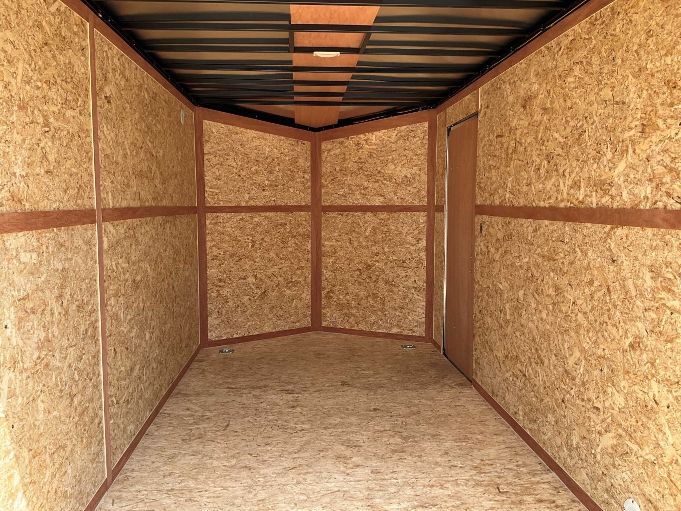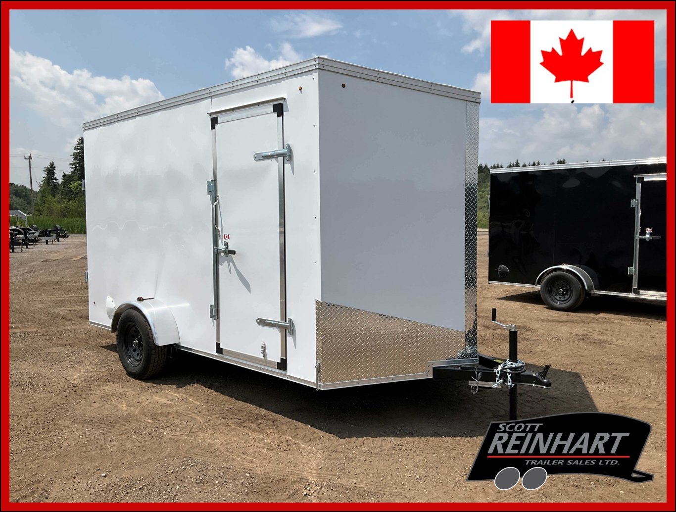 3500LB GVWR, 3500LB Spring Drop Axle with EZ Lube Hubs, Electric Brakes, 15 Inch Radial Tires, Electric Brakes, 2' Sloped V-Nose, 7' Tall, .030 White Screwless Exterior, 32" Side Man Door, Rear Ramp Door with Cable Assist, 3/8" Wood Lined Walls, 3/4" Marine Grade Floor, Seamless Aluminum Roof, 16" On Centre Walls/Floor/Roof, 2 Wall Vents, 12V Dome Light and Switch, 4 D-Ring Tie Downs, ATP Stone Guard, 2" Ball Coupler, A-Frame Tongue Jack with Sand Pad, Sealed LED Lighting