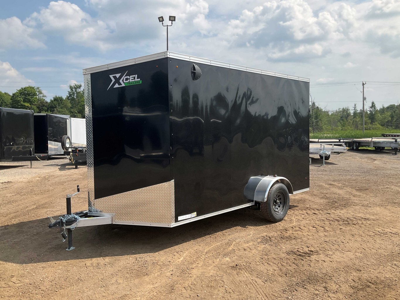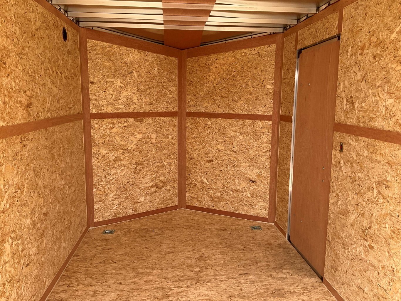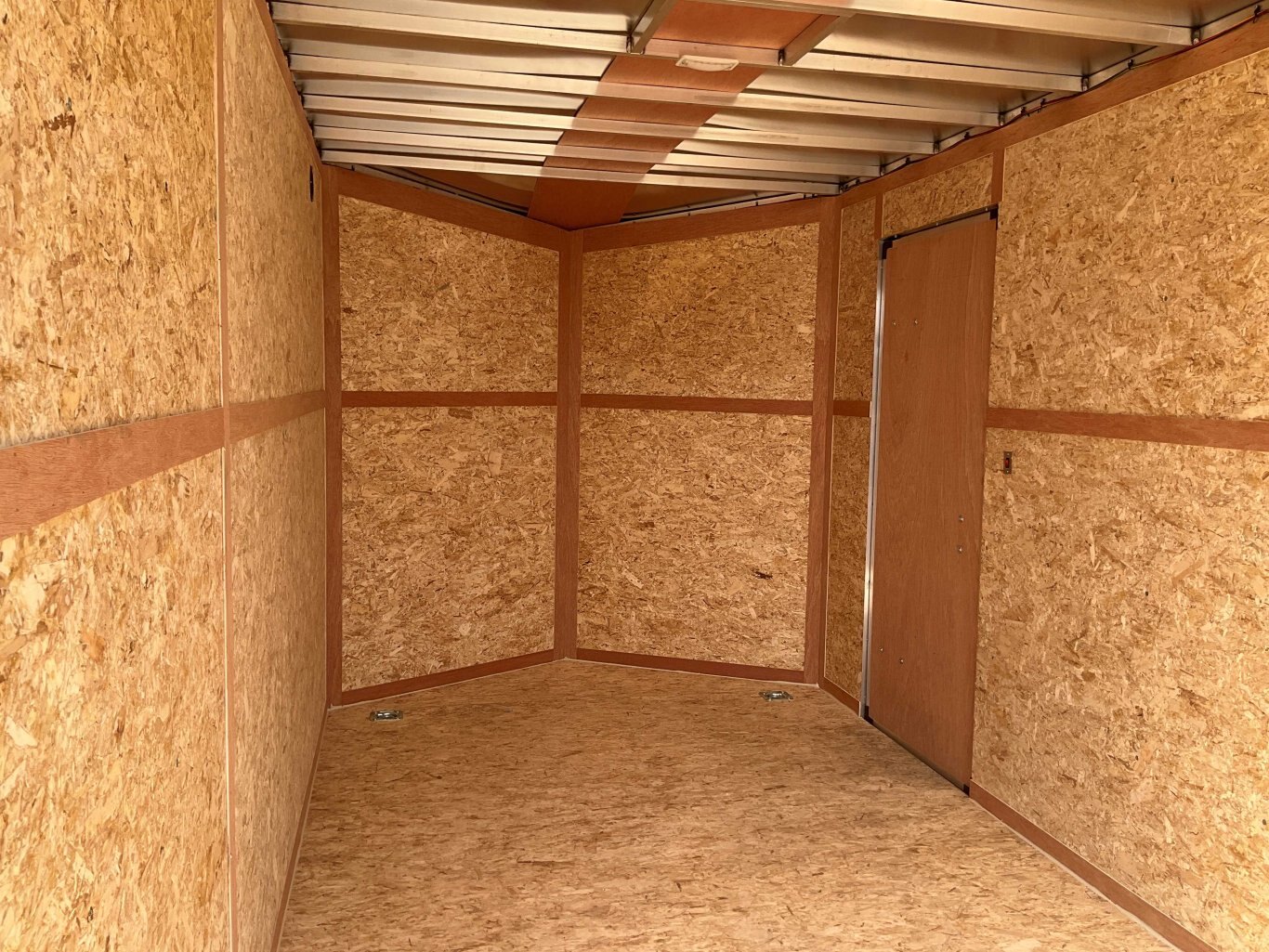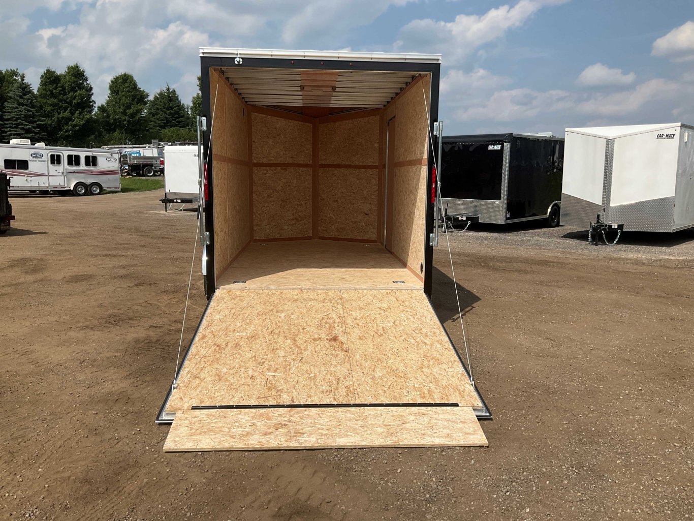 3500LB GVWR, 3500LB Spring Drop Axle with EZ Lube Hubs, Electric Brakes, 15 Inch Radial Tires, Electric Brakes, 2' Sloped V-Nose, 7' Tall, .030 Black Screwless Exterior, 32" Side Man Door, Rear Ramp Door with Cable Assist, 3/8" Wood Lined Walls, 3/4" Marine Grade Floor, Seamless Aluminum Roof, 16" On Centre Walls/Floor/Roof, 2 Wall Vents, 12V Dome Light and Switch, 4 D-Ring Tie Downs, ATP Stone Guard, 2" Ball Coupler, A-Frame Tongue Jack with Sand Pad, Sealed LED Lighting
