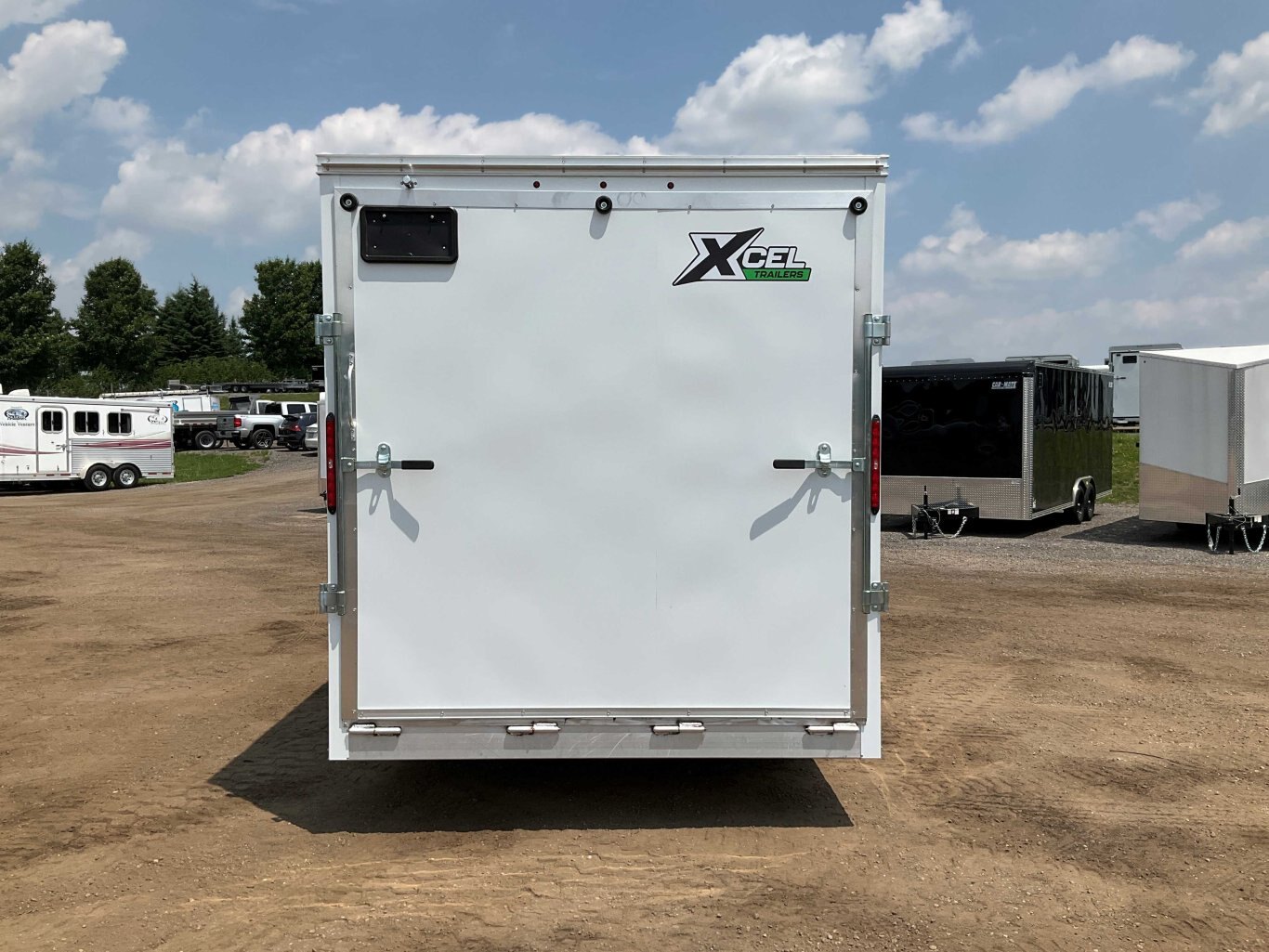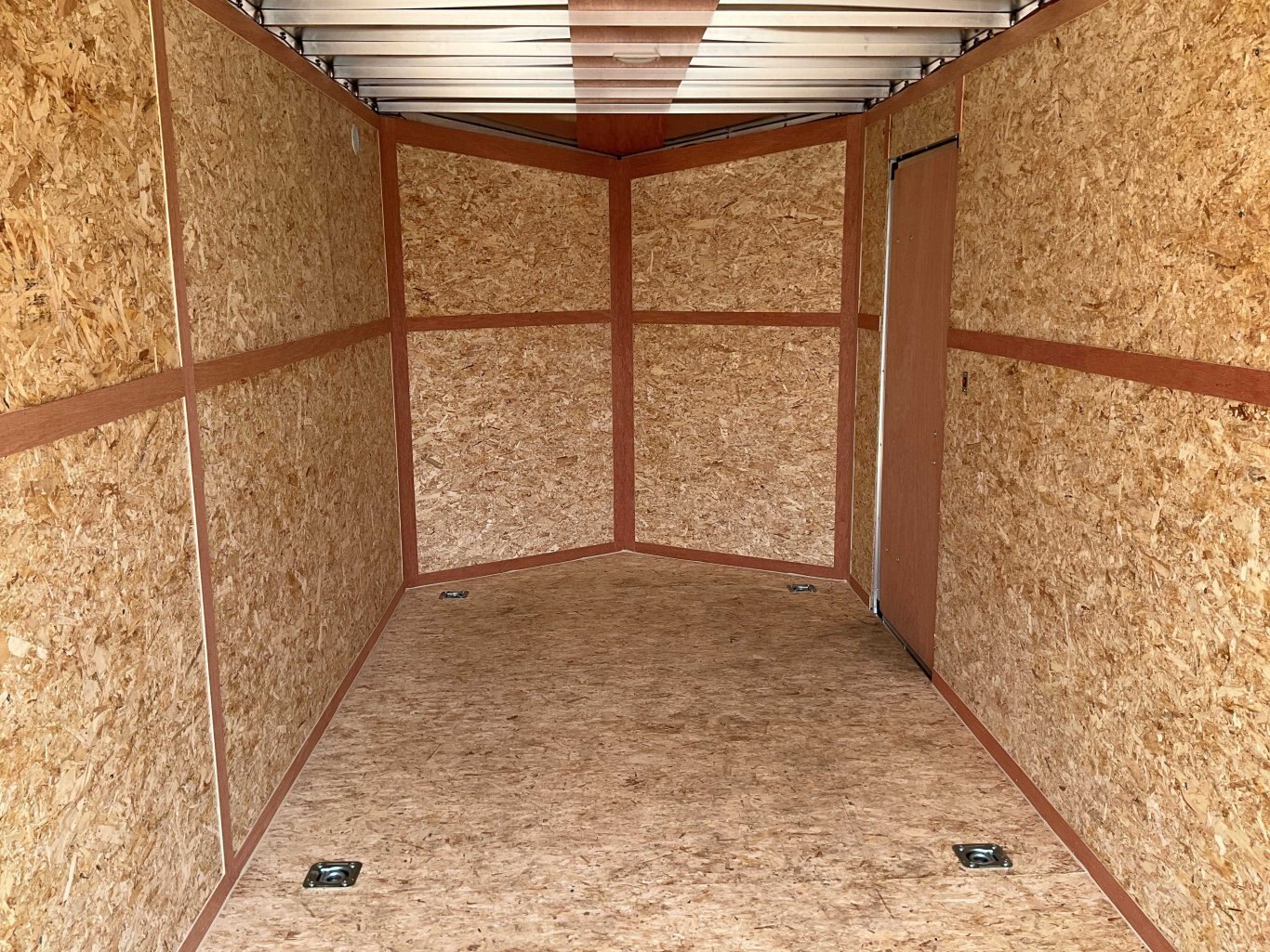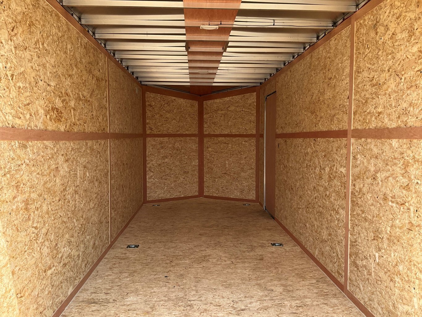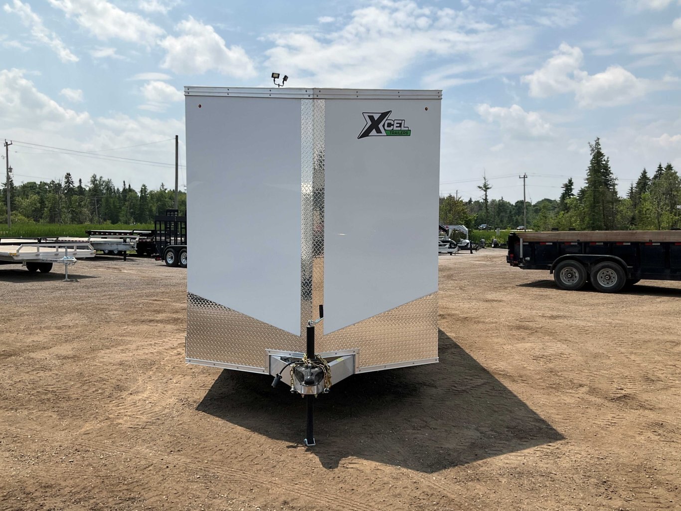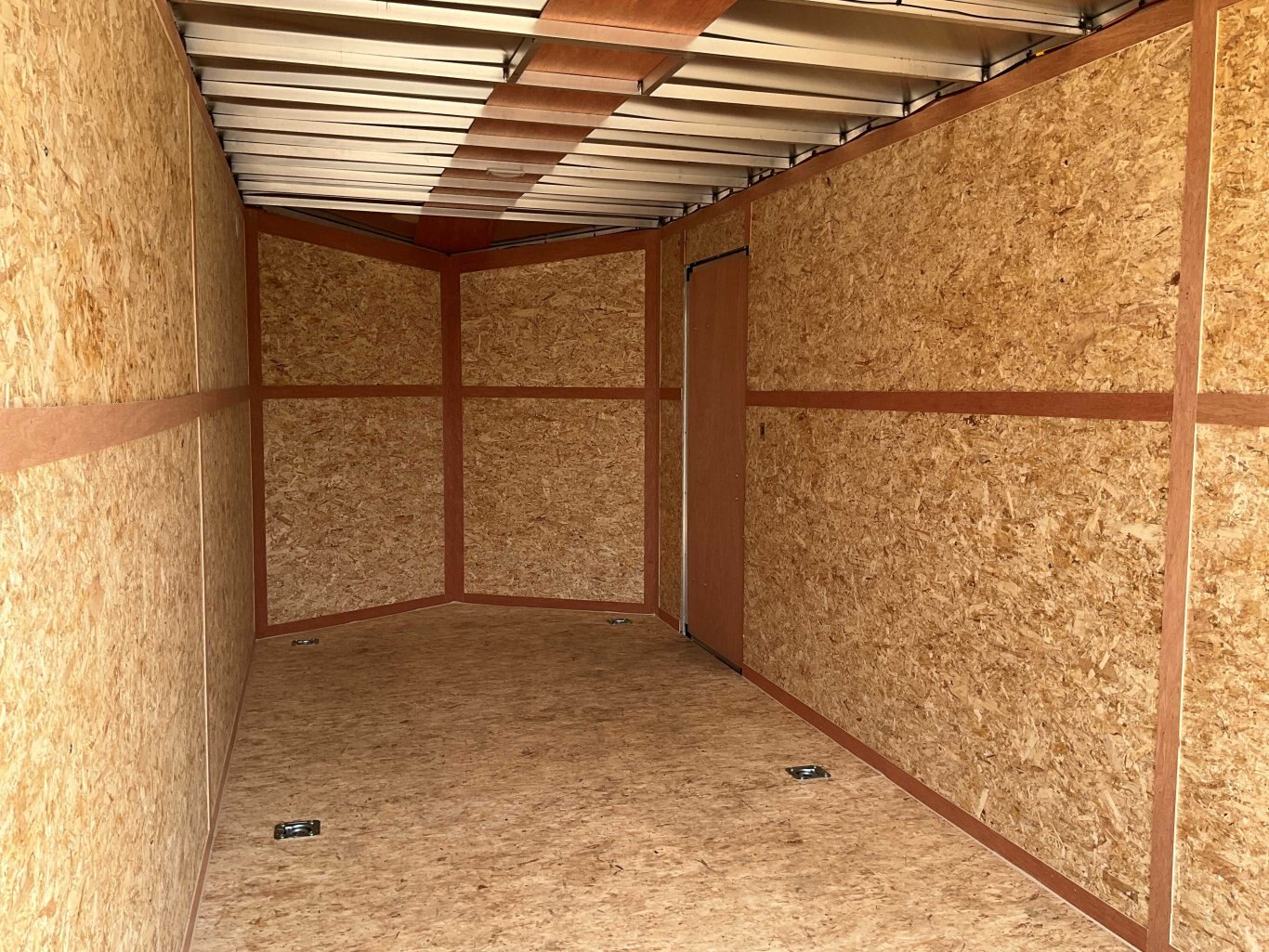 7000LB GVWR, 2 3500LB Spring Drop Axle with EZ Lube Hubs, Electric Brakes, 15 Inch Radial Tires, Electric Brakes, 2' Sloped V-Nose, 7' Tall, .030 White Screwless Exterior, 32" Side Man Door, Rear Ramp Door with Cable Assist, 3/8" Wood Lined Walls, 3/4" Marine Grade Floor, Seamless Aluminum Roof, 16" On Centre Walls/Floor/Roof, 2 Wall Vents, 12V Dome Light and Switch, 6 D-Ring Tie Downs, ATP Stone Guard, 2-5/16" Ball Coupler, A-Frame Tongue Jack with Sand Pad, Sealed LED Lighting