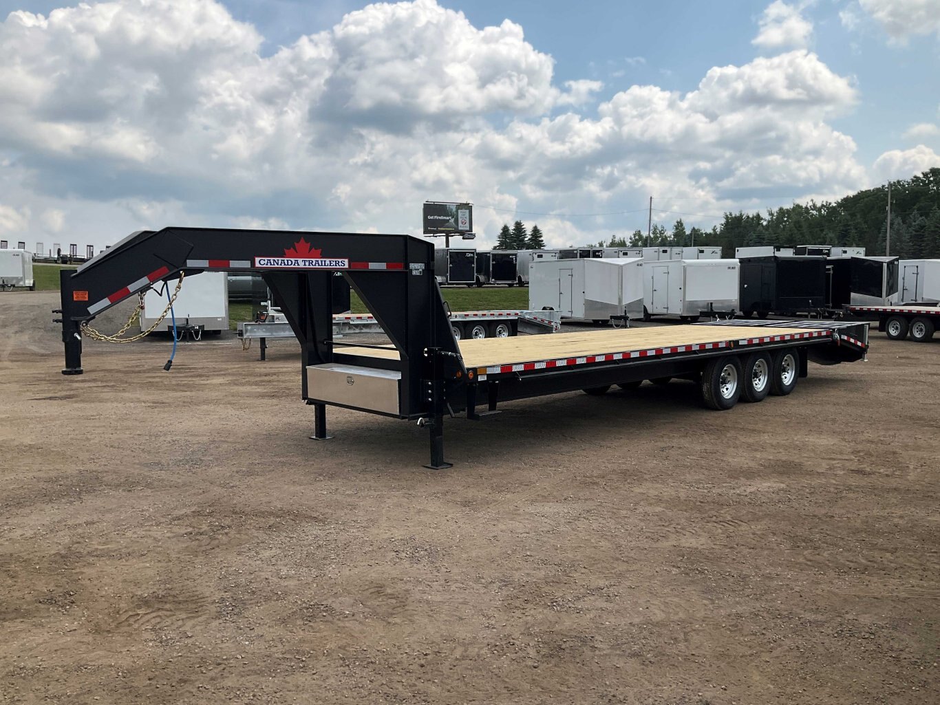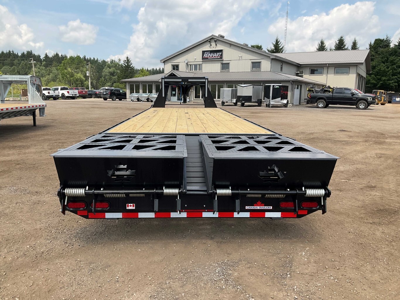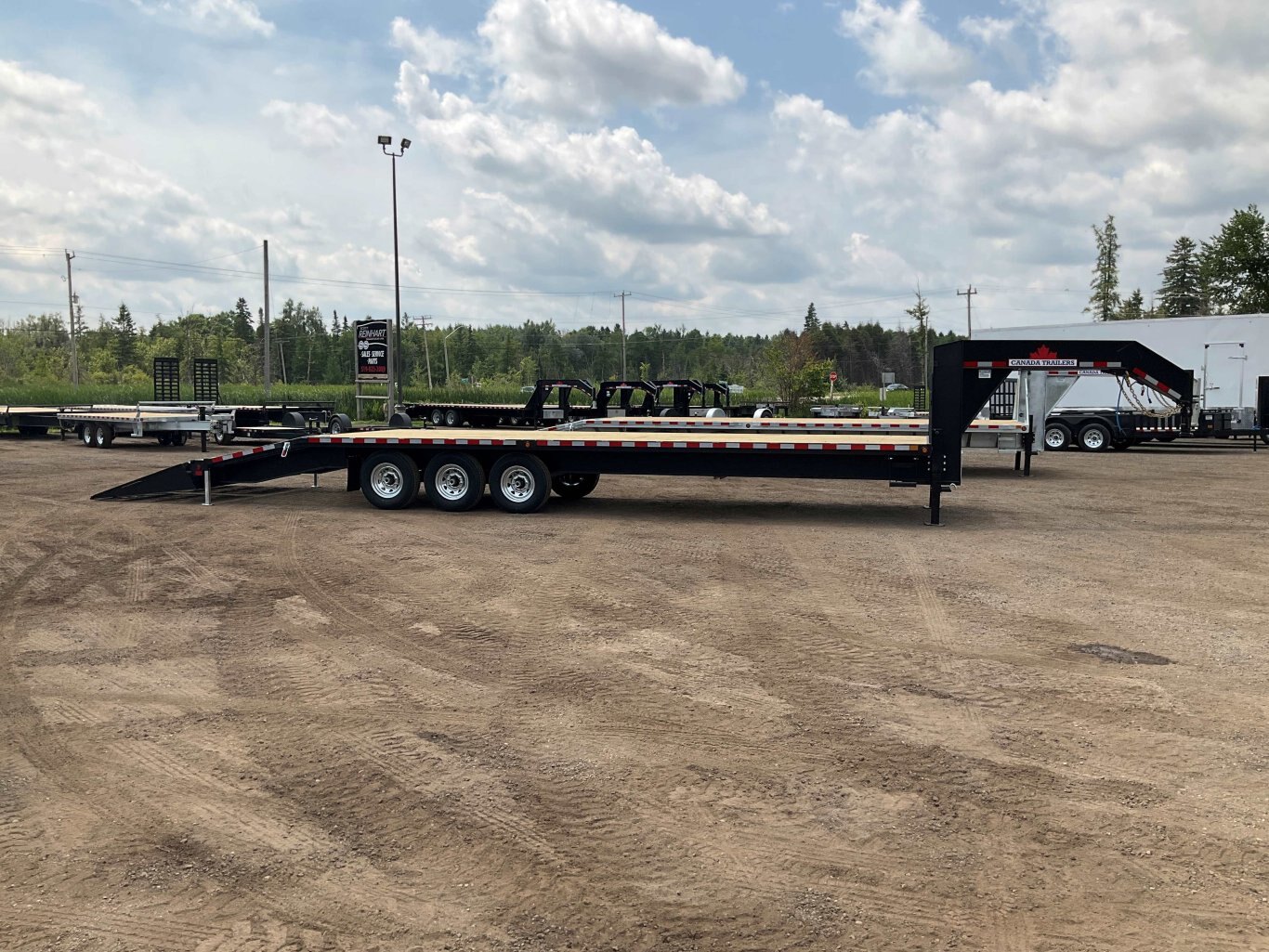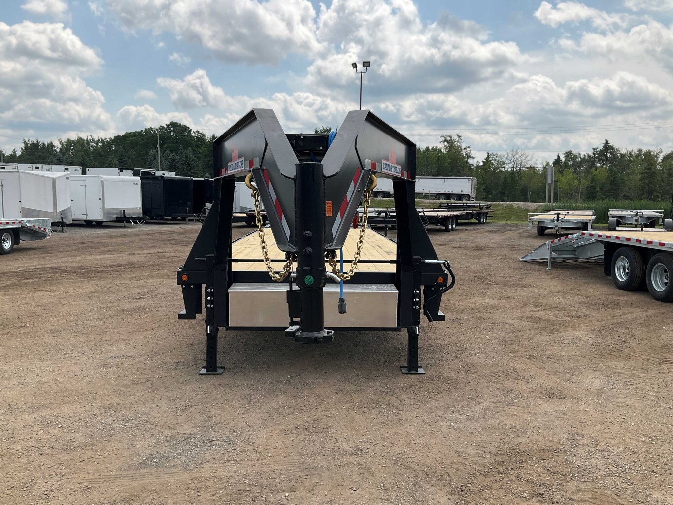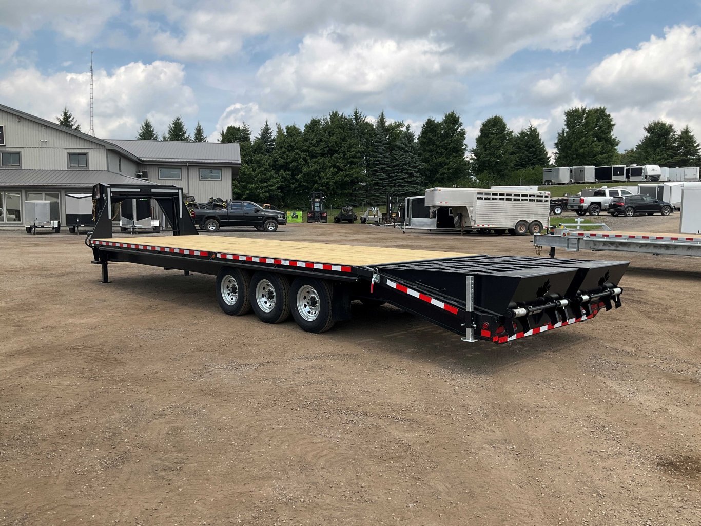 22,680LB GVWR, 3 7000LB Axles with Easy Lube Spindles, Slipper Spring Suspension, Electric Brakes on All Axles, 16 Inch Radial Tires, Galvanized Rims, Adjustable Gooseneck Coupler, 2 12,000LB Drop Leg Jacks, 5' Beavertail, 5' Spring Assisted Wedge Ramps, 16 Inch Crossmembers, Flex Resisting Bridge, 36 Inch Deck Height, Pressure Treated Wood Floor, 9' Gooseneck Length, Stake Pockets and Rub Rails, Side Steps on Both Sides, Drivers Side Winch Track, Lockable Aluminum Toolbox, Spare Tire Mount, Rubber Mount Sealed LED Lighting, Full Sealed Wire Harness, Black Powder Coat Painted with Scorpion Stone Guard