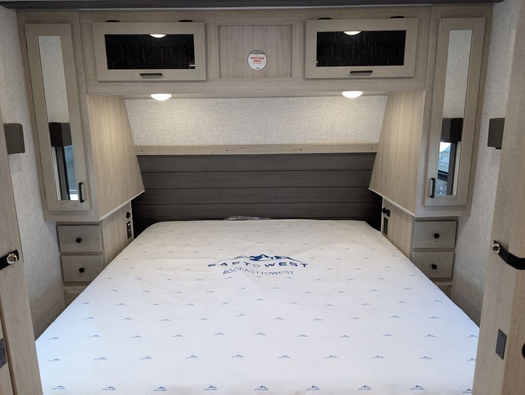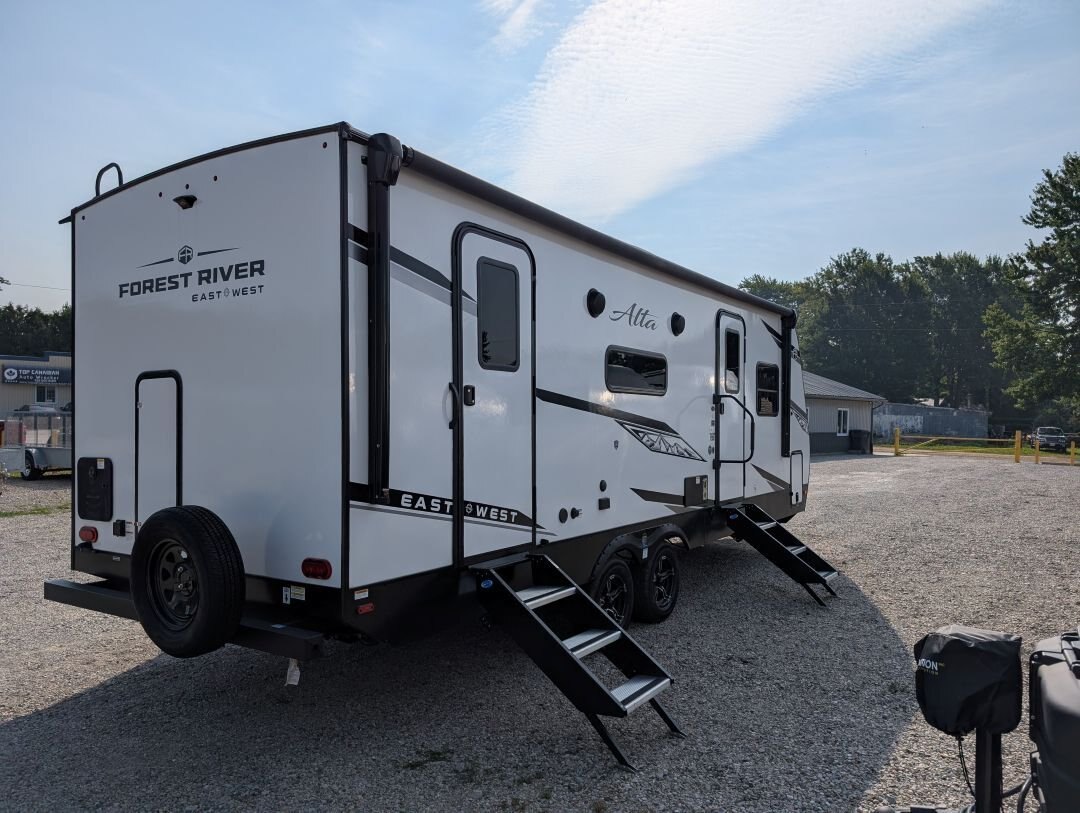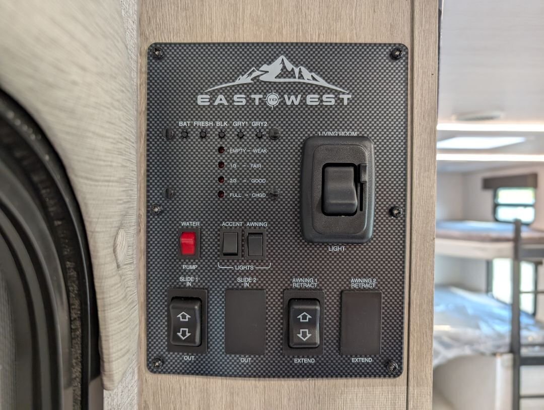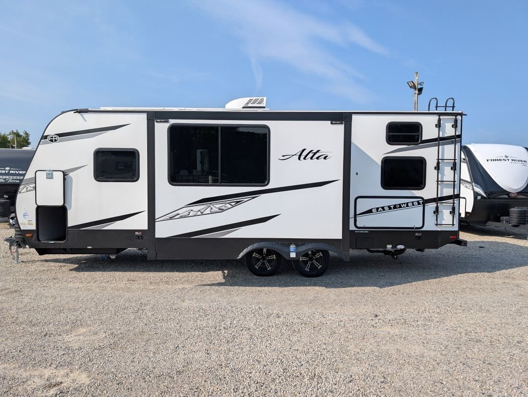 REG: $55,995 SALE: $49,995 The 2025 East to West Alta 2475KBH is a premium bunkhouse travel trailer designed for family comfort, durability, and all-season travel. With double bunks, plenty of storage, a king bed, upscale interior finishes, and robust construction, it’s an excellent choice for longer excursions, family camping, or full-time RVing. Financing available for as low as $106/week OAC. Specs: • Sleeps: Up to 7 people • Slideouts: 1 large slide • Length: 29 ft 5 in • Width: 8 ft • Height: 11 ft 2 in • DRY WEIGHT: ~6,378 lbs • CCC: ~3,267 lbs • Hitch Weight: ~845 lbs • Fresh Water: 53 gal • Gray Water: 60 gal • Black Water: 30 gal Options & Features: • 35,000 BTU Furnace • 15,000 BTU ducted A/C • 200W roof-mounted solar panel \ 30A controller • King-size bed • Double-size rear bunks • Booth dinette converts to bed • 10.7 cu ft 12V fridge • 3-burner cooktop with oven • Solid surface countertops • USB/USB-C charging stations • Full rear bath • ABS shower surround • Porcelain foot-flush toilet • Skylight • 81\'\' interior height • LED lighting (dimmable) • Black roller shades • Oversized windows • Enclosed & heated underbelly • 21 ft power awning with LED lights • Dual entry doors • Slam-latch pass-through storage • Power stabilizer & tongue jacks • Backup camera prep • Marine-grade speakers • Luxe Décor Package • USB/USB-C at beds & dinette • Under-seat storage in dinette • High-end finishes throughout Extras: • 40” LED TV • Goodyear tire upgrade • Kayak side-access door • West Coast Power Package • MorRyde solid steps