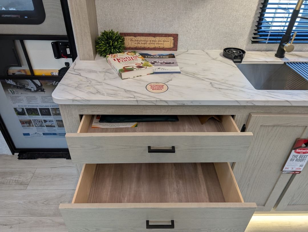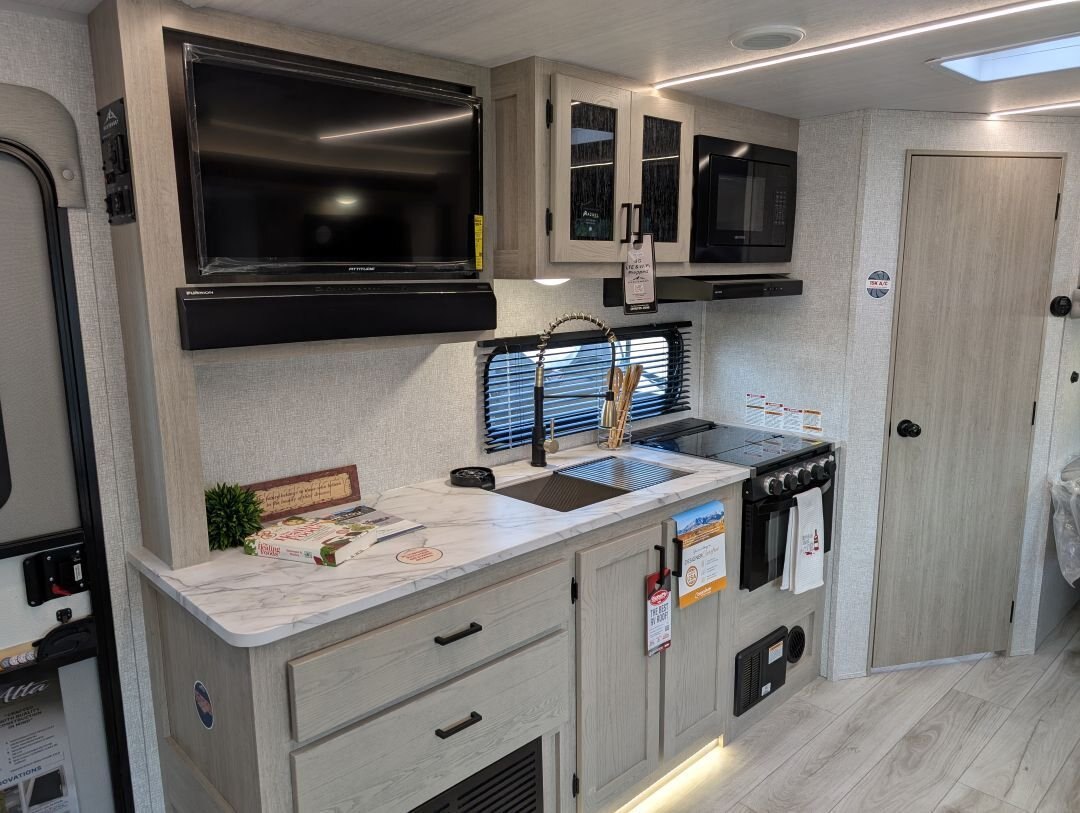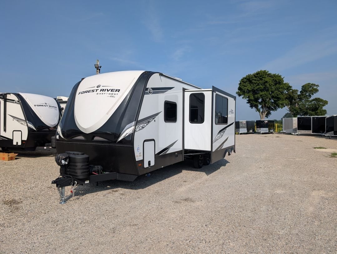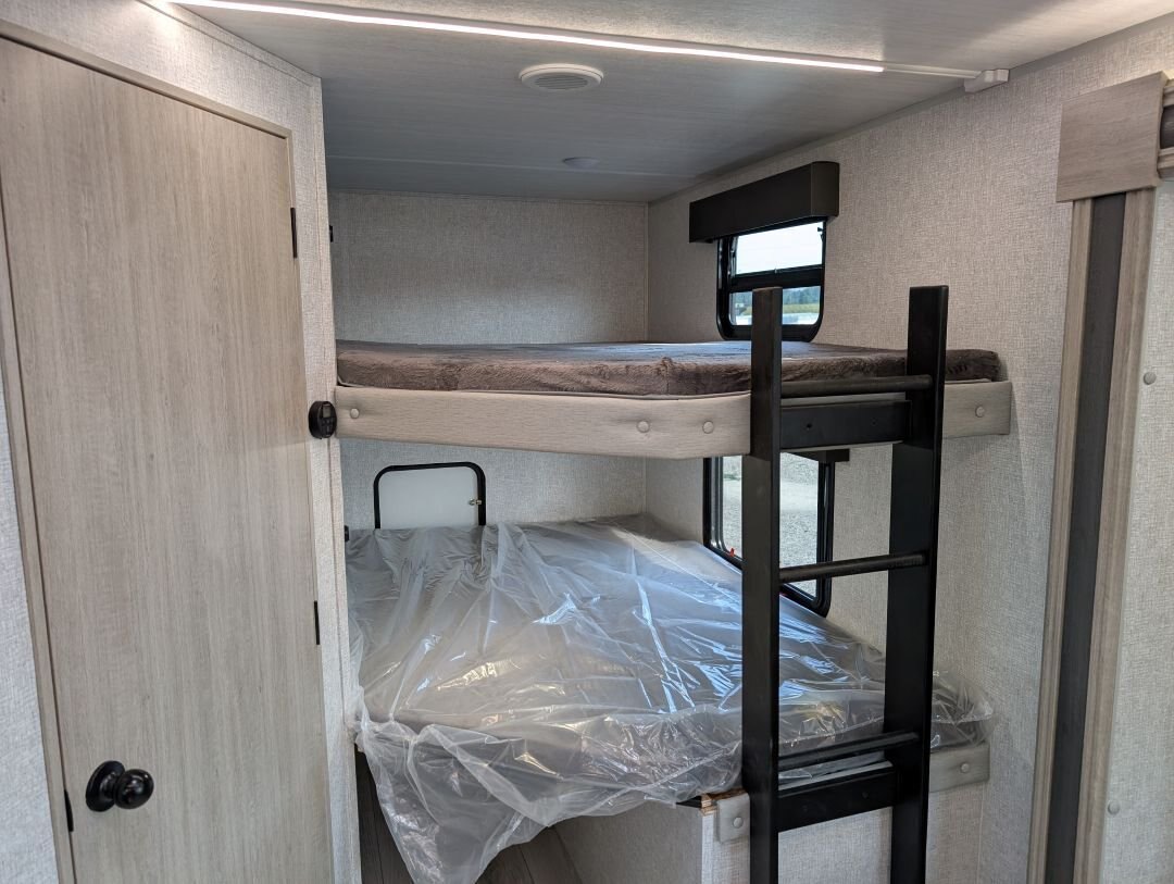 REG: $55,995 SALE: $49,995 The 2025 East to West Alta 2475KBH is a premium bunkhouse travel trailer designed for family comfort, durability, and all-season travel. With double bunks, plenty of storage, a king bed, upscale interior finishes, and robust construction, it’s an excellent choice for longer excursions, family camping, or full-time RVing. Financing available for as low as $106/week OAC. Specs: • Sleeps: Up to 7 people • Slideouts: 1 large slide • Length: 29 ft 5 in • Width: 8 ft • Height: 11 ft 2 in • DRY WEIGHT: ~6,378 lbs • CCC: ~3,267 lbs • Hitch Weight: ~845 lbs • Fresh Water: 53 gal • Gray Water: 60 gal • Black Water: 30 gal Options & Features: • 35,000 BTU Furnace • 15,000 BTU ducted A/C • 200W roof-mounted solar panel \ 30A controller • King-size bed • Double-size rear bunks • Booth dinette converts to bed • 10.7 cu ft 12V fridge • 3-burner cooktop with oven • Solid surface countertops • USB/USB-C charging stations • Full rear bath • ABS shower surround • Porcelain foot-flush toilet • Skylight • 81\'\' interior height • LED lighting (dimmable) • Black roller shades • Oversized windows • Enclosed & heated underbelly • 21 ft power awning with LED lights • Dual entry doors • Slam-latch pass-through storage • Power stabilizer & tongue jacks • Backup camera prep • Marine-grade speakers • Luxe Décor Package • USB/USB-C at beds & dinette • Under-seat storage in dinette • High-end finishes throughout Extras: • 40” LED TV • Goodyear tire upgrade • Kayak side-access door • West Coast Power Package • MorRyde solid steps