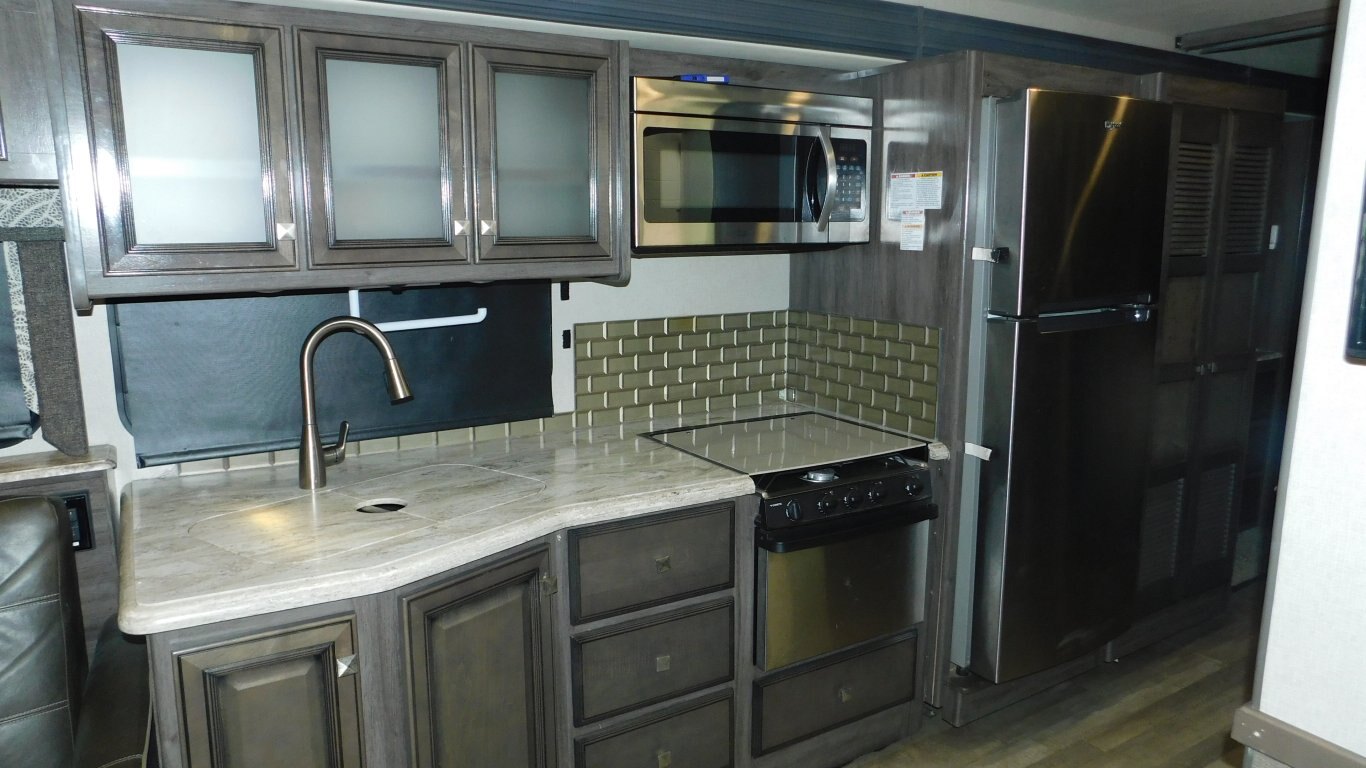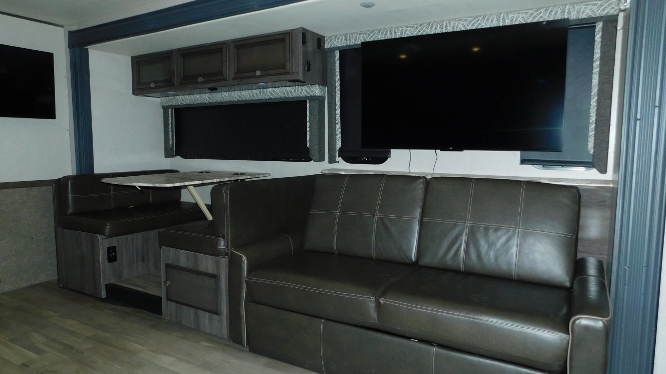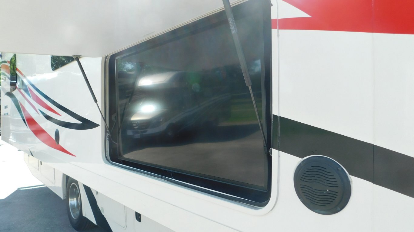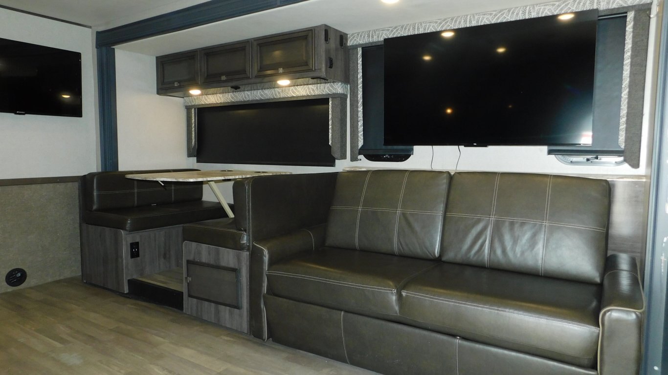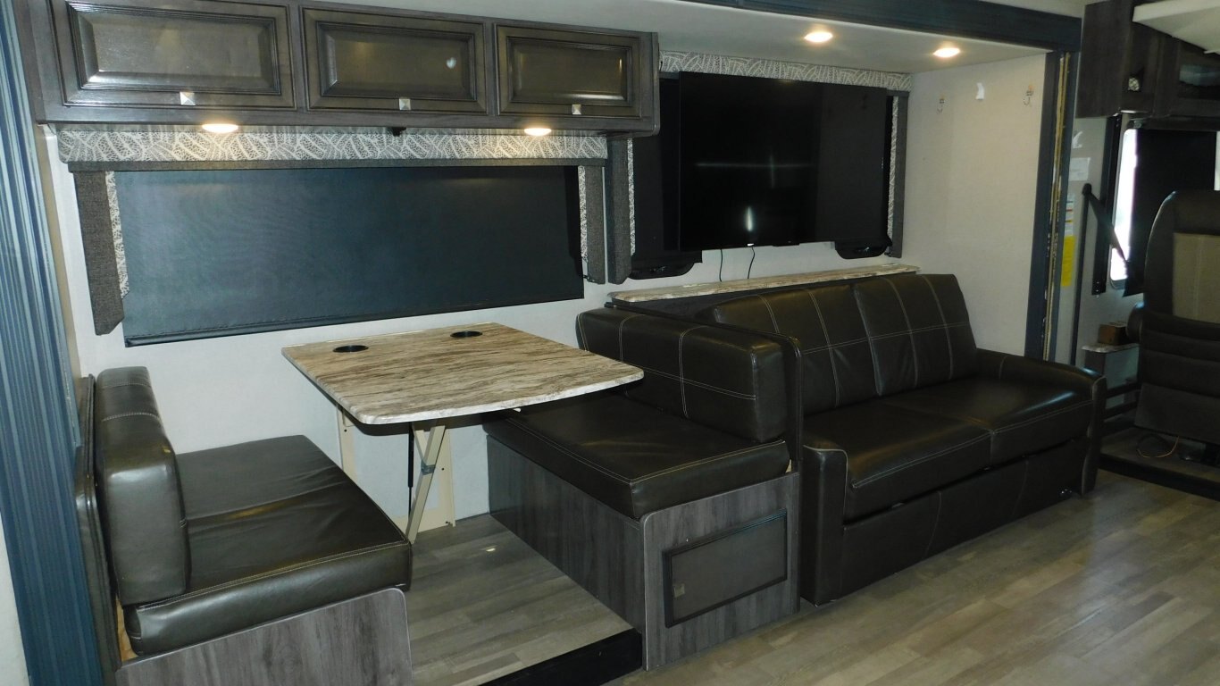 This 2019 Holiday Rambler 35R is very clean with a great layout. It has 2 slides, and is equipped with the following options: -CHASSIS: Ford -ENGINE: Triton V10 -TRANSMISSION: 6 Speed Automatic -FUEL CAPACITY:(gal) 80 -HITCH RATING:(lbs) 8,000 -Tires DOT 26/18 -PROPANE TANK:(gal) 14 -GENERATOR: ONAN Quiet 5.5KW (593.3 hrs) - Length - 36 ft. - Width - 8.5 ft. - Height - 12.5 ft. - 2 Power Slideouts - Front & Rear Power Levelling Jacks - 18 ft. Power Awning - 13,500 BTU Air Conditioner - 34,000 BTU Furnace - Water Heater - Plenty of Basement Storage -Overhead power bunk -Back up/Side view cameras -Outside 50\'\' TV -Outside shower - Convertible Dinette -Convertible sofa - 3 Burner Stove - 2 Door Refrigerator/Freezer - Microwave Oven - 32\'\' LCD TV in Master -50\'\' LCD TV and 39\'\' LCD TV in Living room - Bright Shower w/ Skylight - King Bed with storage underneath in Master - Large Wardrobe in Master - Plenty of Interior Storage -Washer/Dryer Combo -Roof Ladder - etc. -COME BY AND SEE IT TODAY!