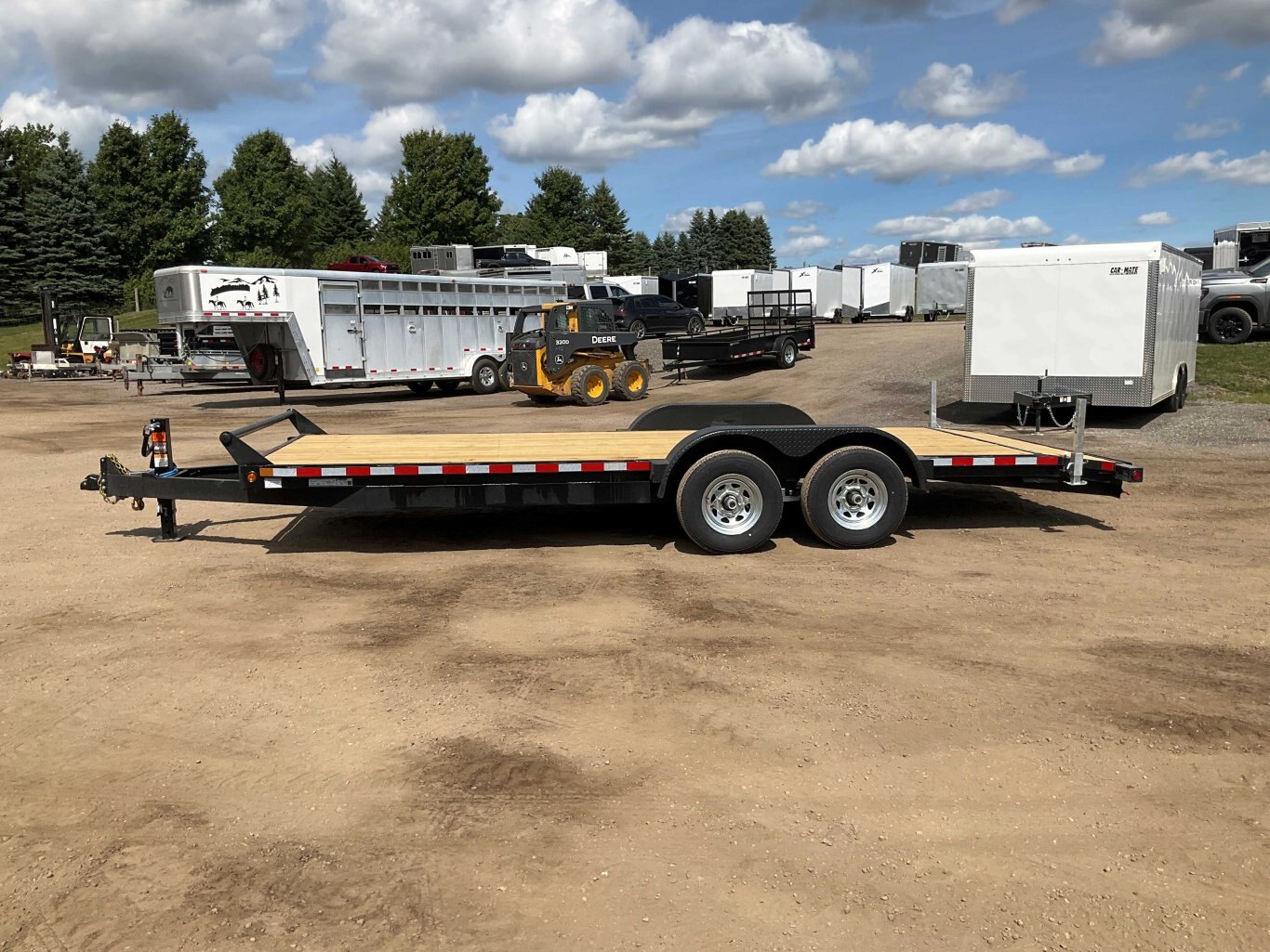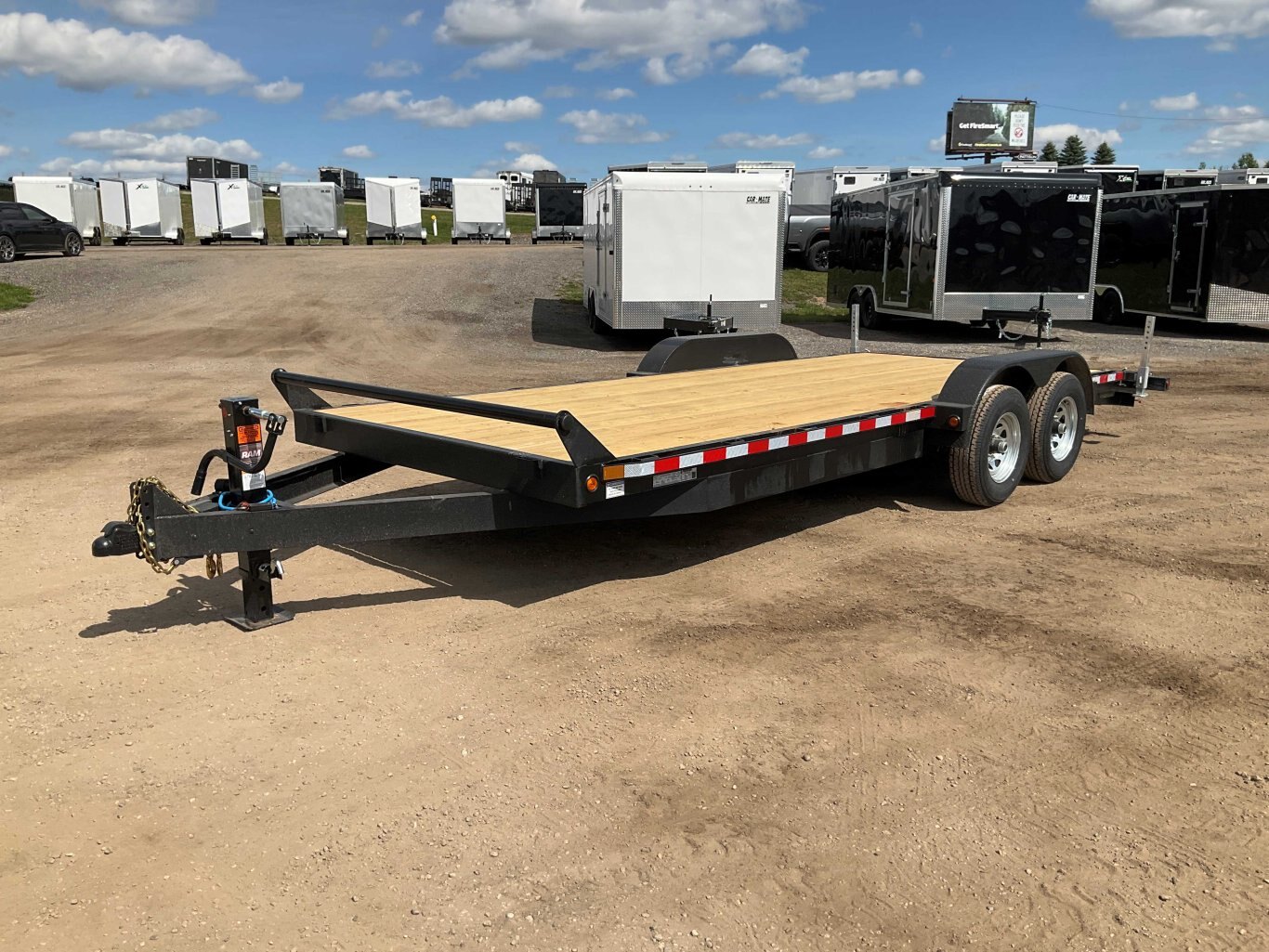 10,800LB GVWR, 2 5200LB Axles with Easy Lube Spindles, Slipper Spring Suspension, 15 Inch Radial Tires, Electric Brakes on Both Axles, 23 Inch Deck Height, 2' Beavertail with Wood Floor, 4' Ramps Stowed Underneath, Pressure Treated Wood Floor, HD Treadplate Fender Upgrade, 52 Inch Tongue Length, Stake Pockets, Spare Tire Mount, Rubber Mount Sealed LED Lighting, Full Sealed Wire Harness, Powder Coat Painted with Scorpion Stone Guard on Front
