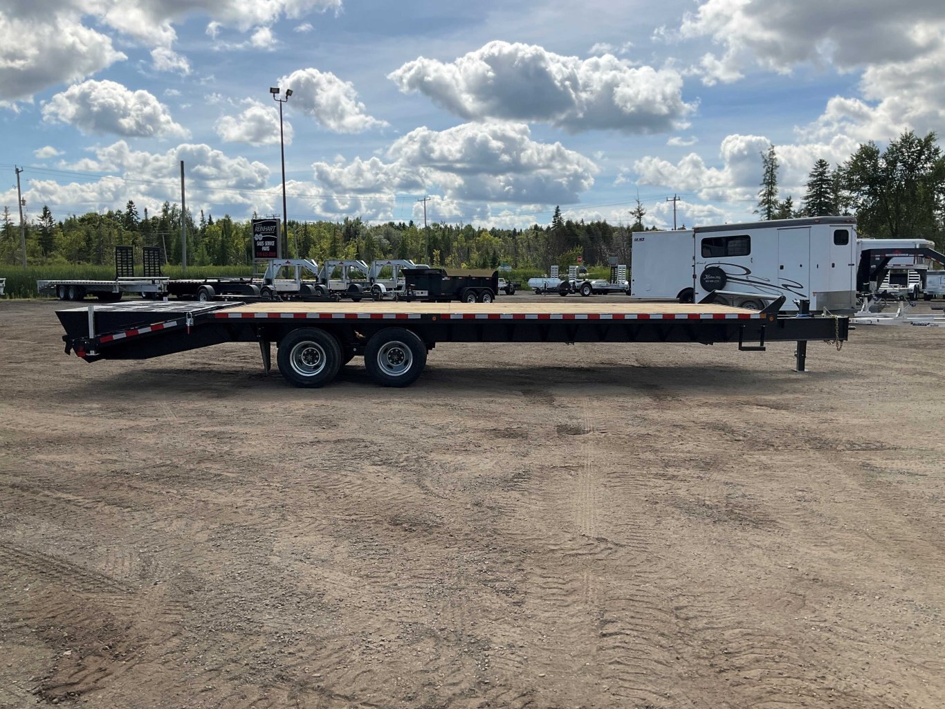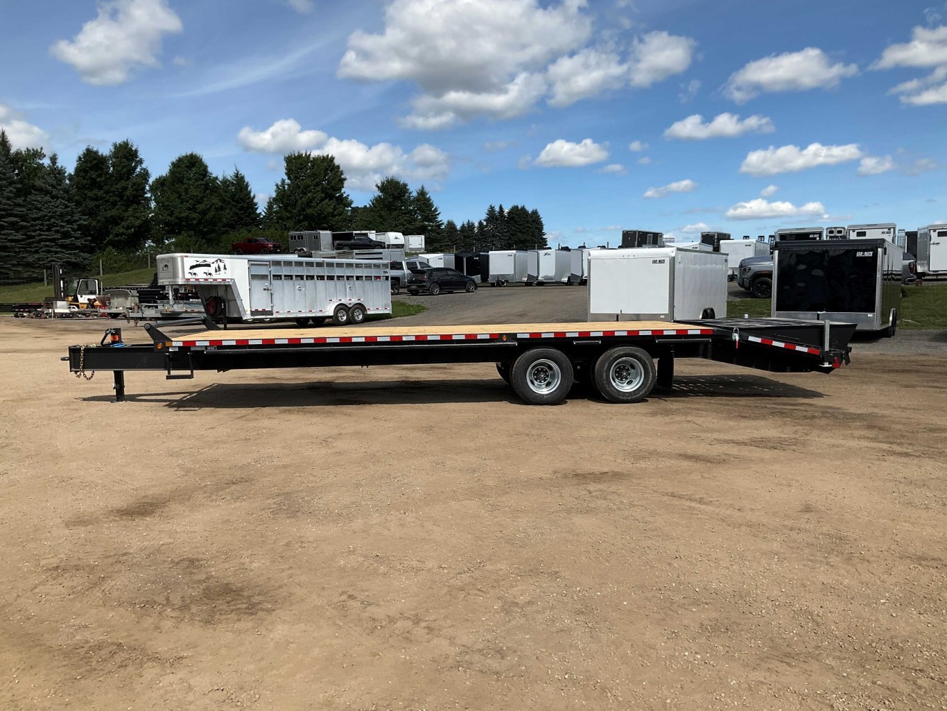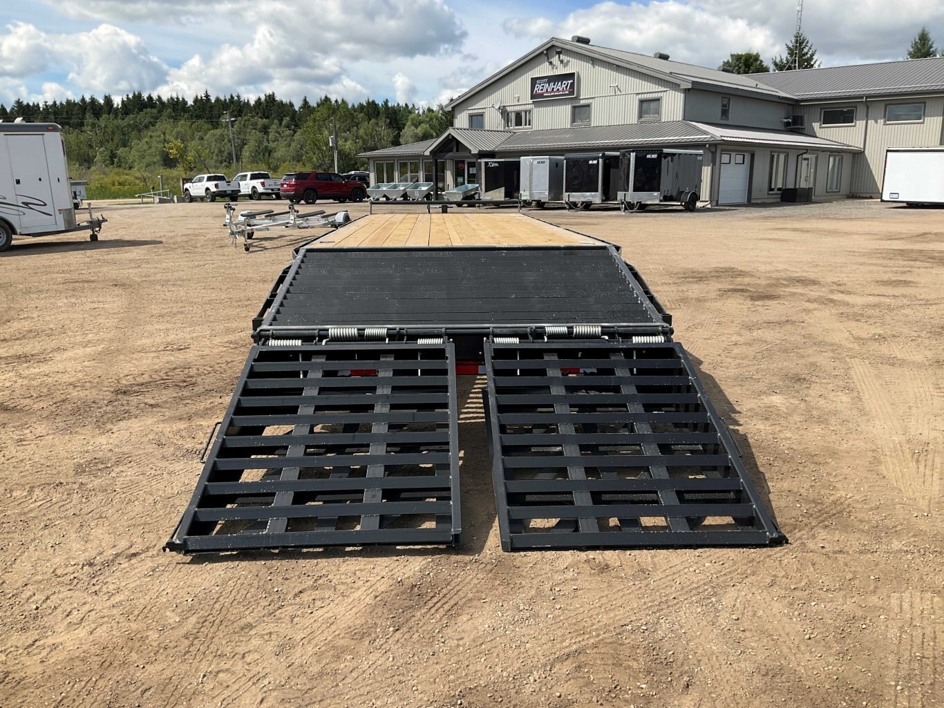 25,920LB GVWR, 2 12,000LB Axles with Oil Bath Hubs, 16 Inch Radial Tires, Electric Brakes on Both Axles, 12,000LB Drop Leg Jack, 5' Beaver Tail, 5' Spring Assisted Wedge Ramps, Heavy Wide Flange Beam Frame, 16 Inch Cross Members, Flex Resisting Bridge, 36 Inch Deck Height, Pressure Treated Wood Floor, 62 Inch Tongue, Stake Pockets and Rub Rails, Side Step on Each Side, Winch Track, Sealed LED Lighting, Sealed Harness, Powder Coat Painted, Scorpion Stone Guard