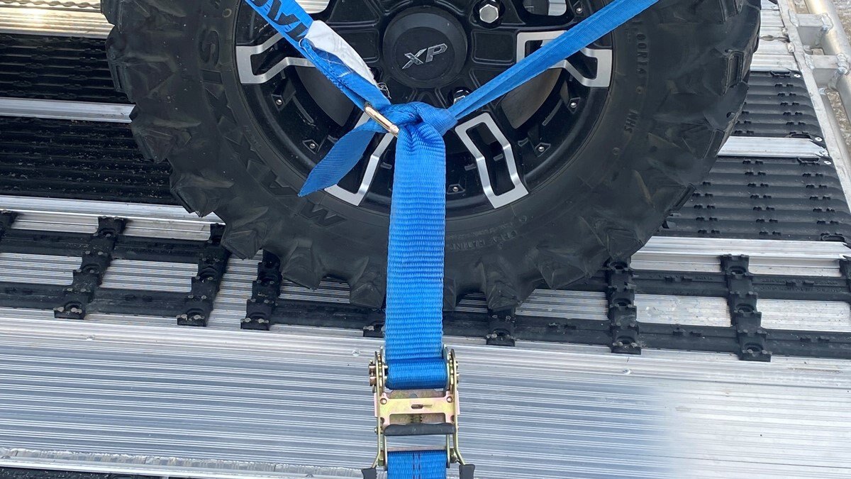 Extruded sides which you may recognize from our sled decks. With tie down points down the entire side at a 45 degree angle allowing you to tie down dirt bikes, various items you may carry from the lumber yard or to the dump or your ATV or side by side using our tire tie downs.