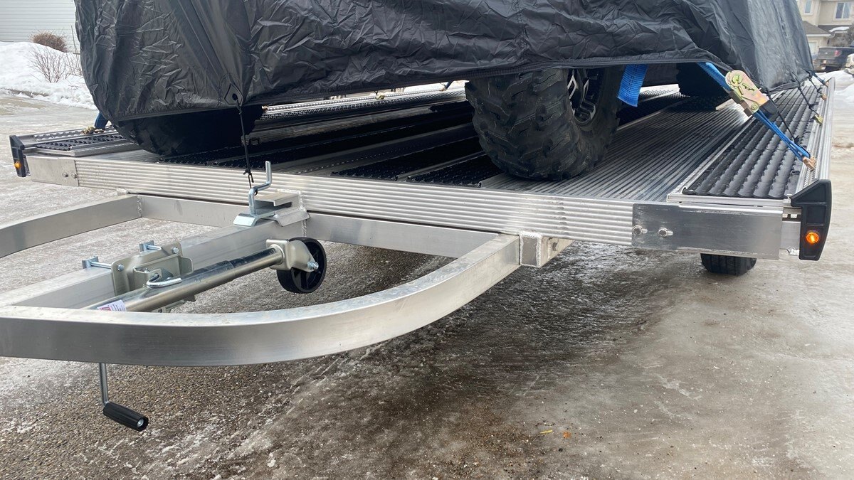We wanted it lite so it can be towed behind a selection of vehicles to haul your sled, ATV, Trailer SxS, stack of wood. ……that’s why it is all aluminum!