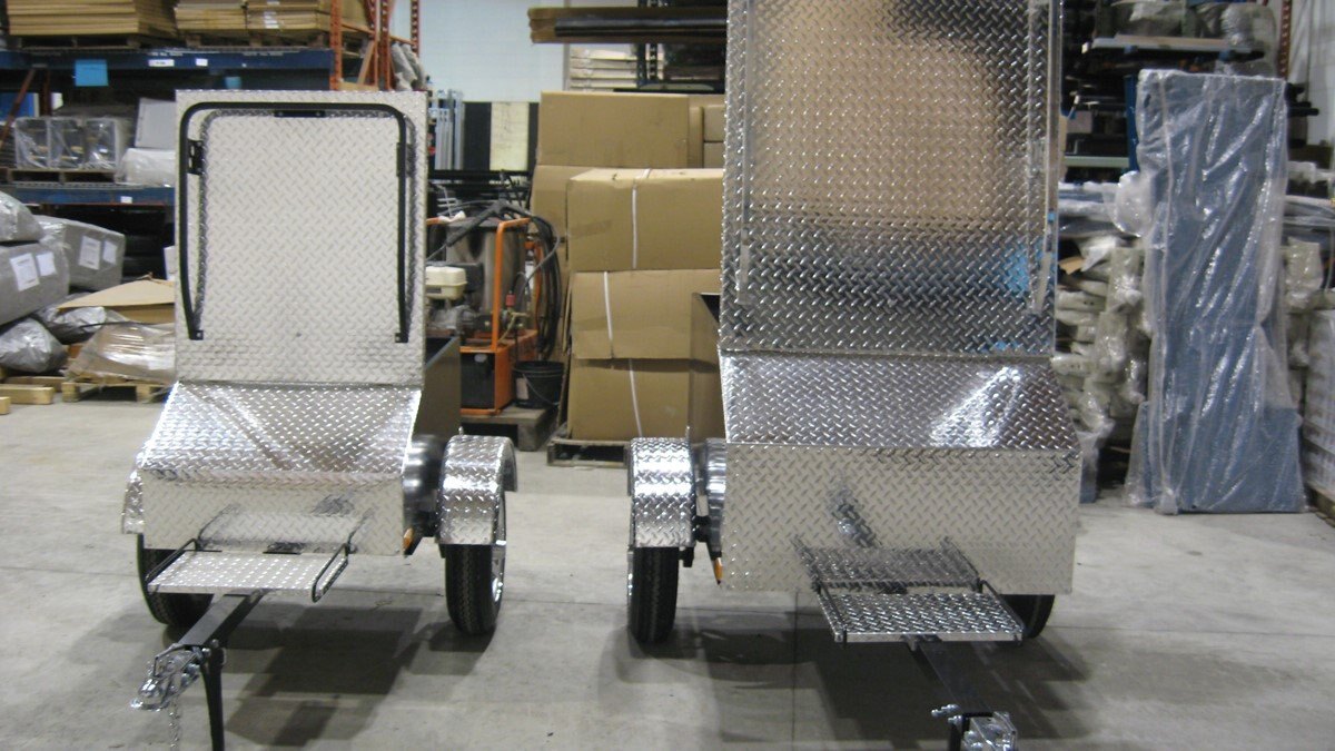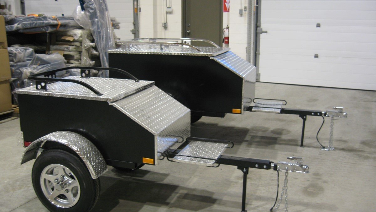 The Marlon AMT Aluminum Motorcycle Trailer is built with an aluminum frame, painted aluminum body with attractive aluminum checker plate accents. Comes with interior carpeted floor & walls also a standard baggage rack.