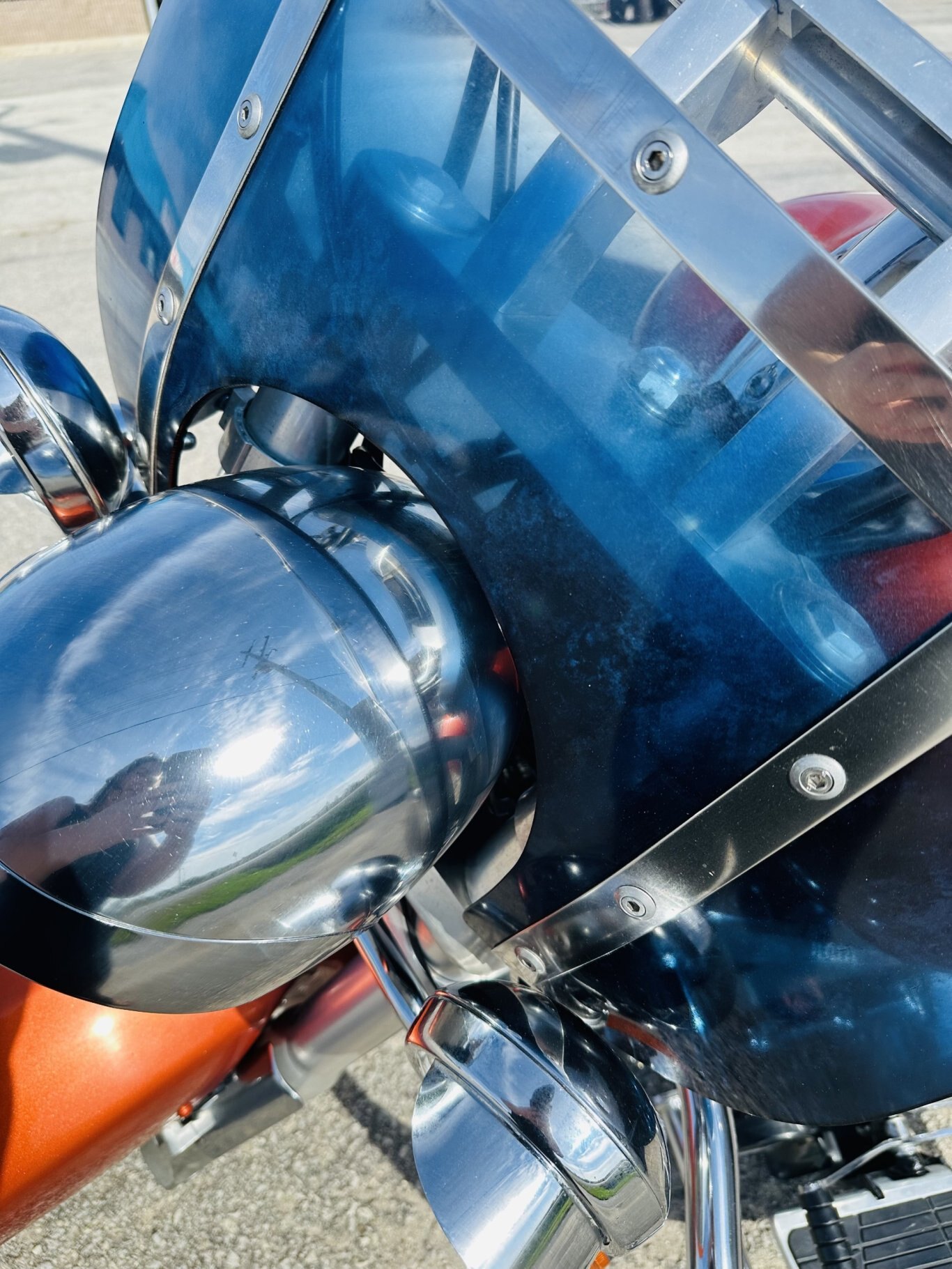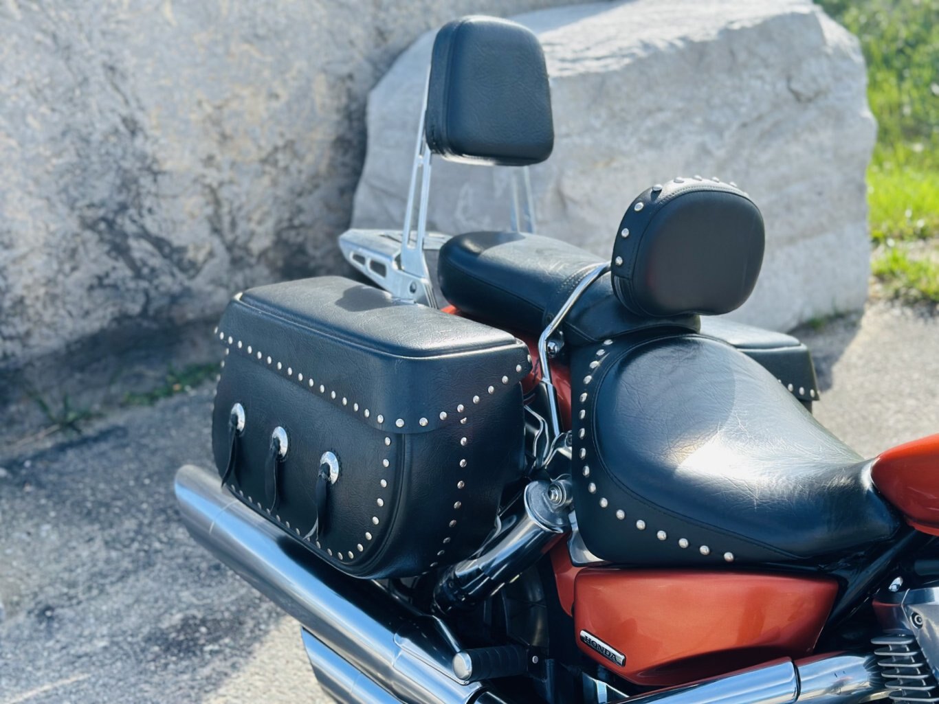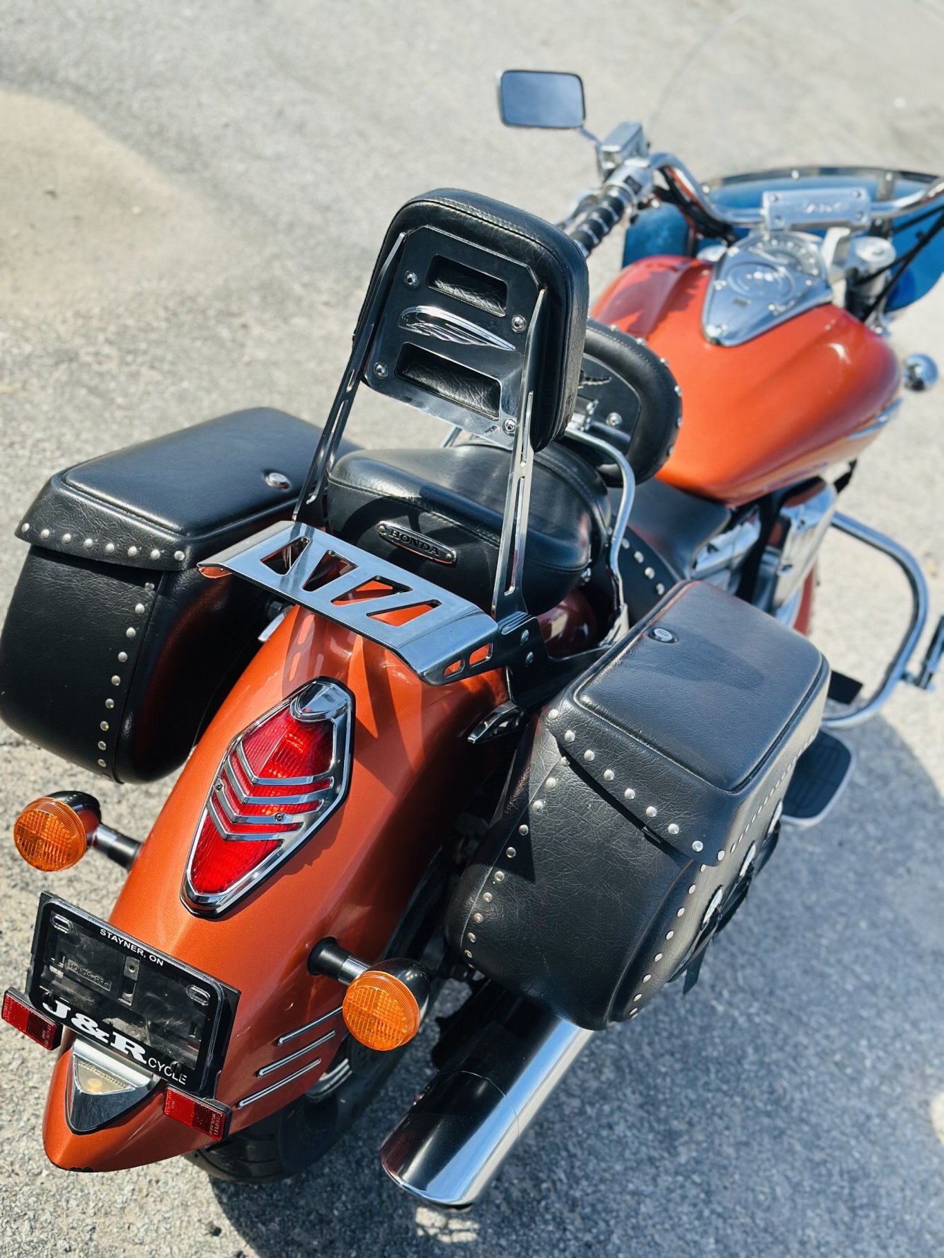 Has engine guards, hwy pegs, driver floor boards, heel - toe shifter, fog lights, throttle rocker/lock, driver & passenger backrest with luggage rack & saddle bags. Certified with fresh oil & filter.