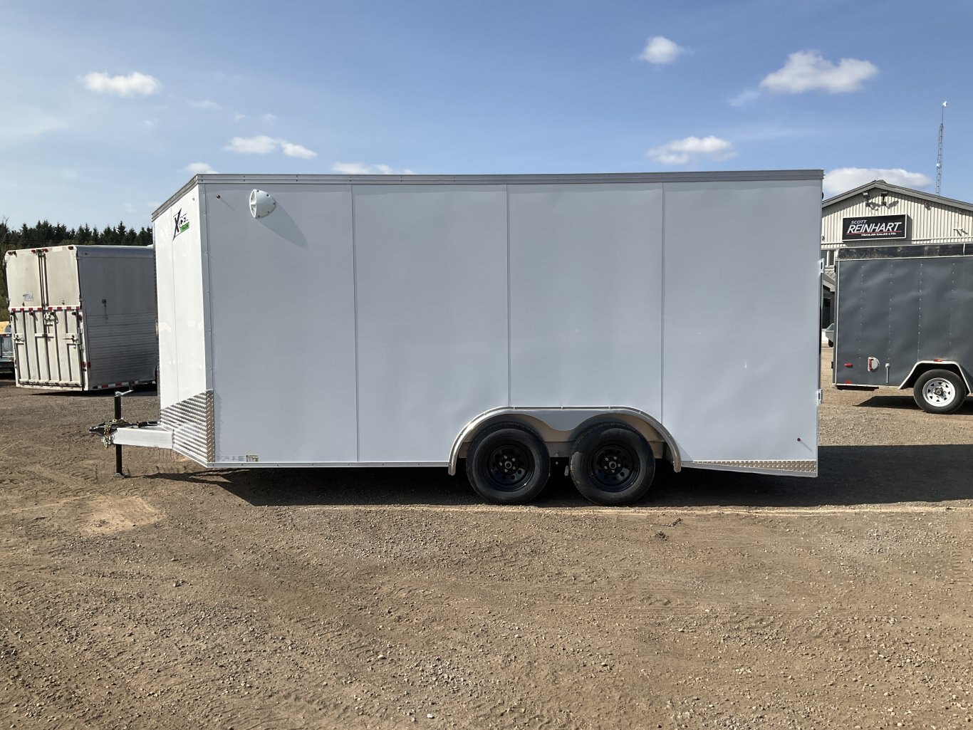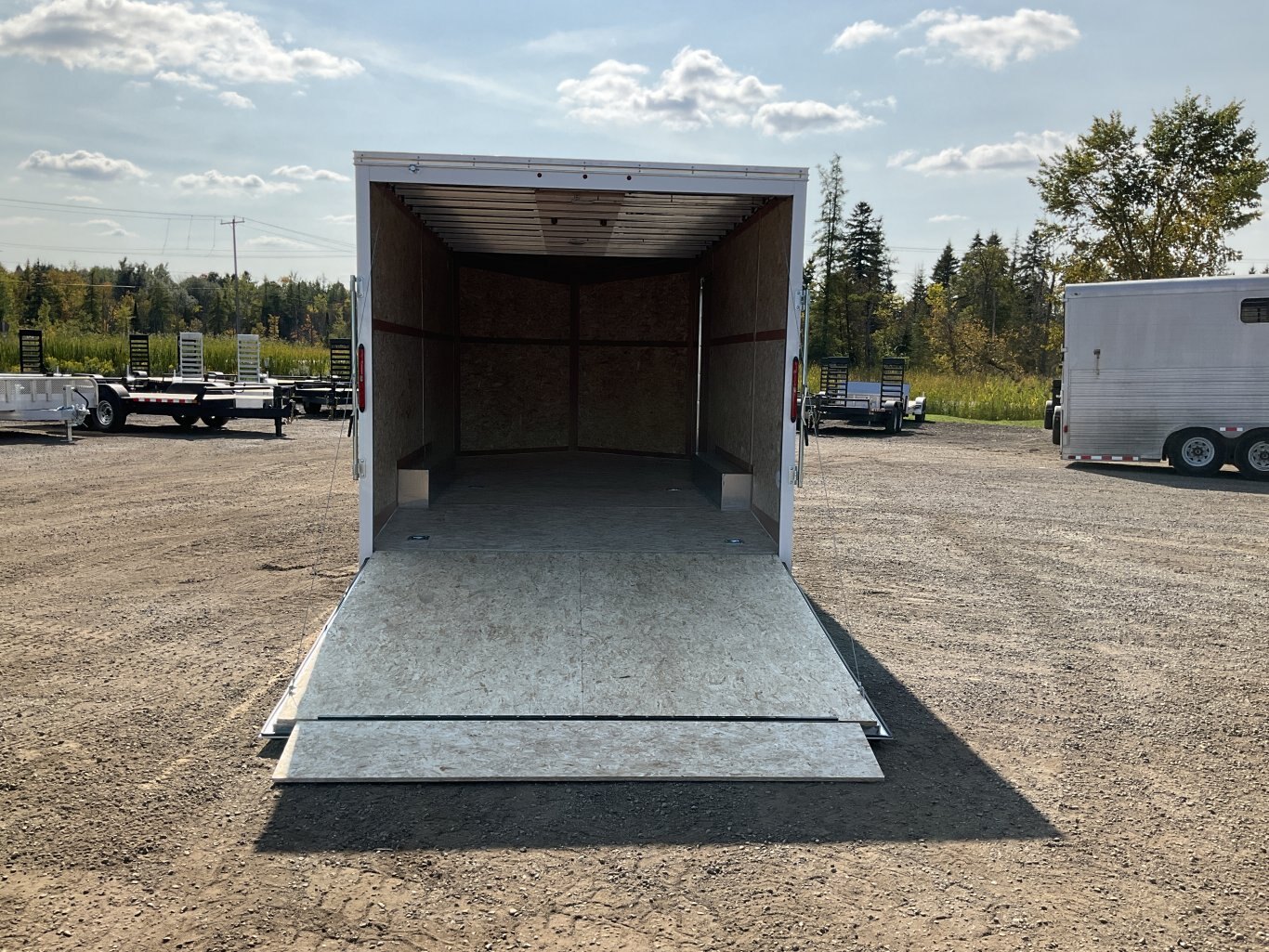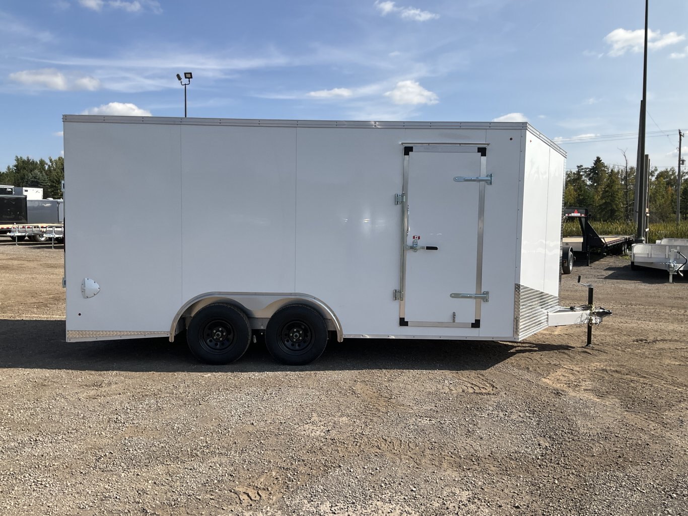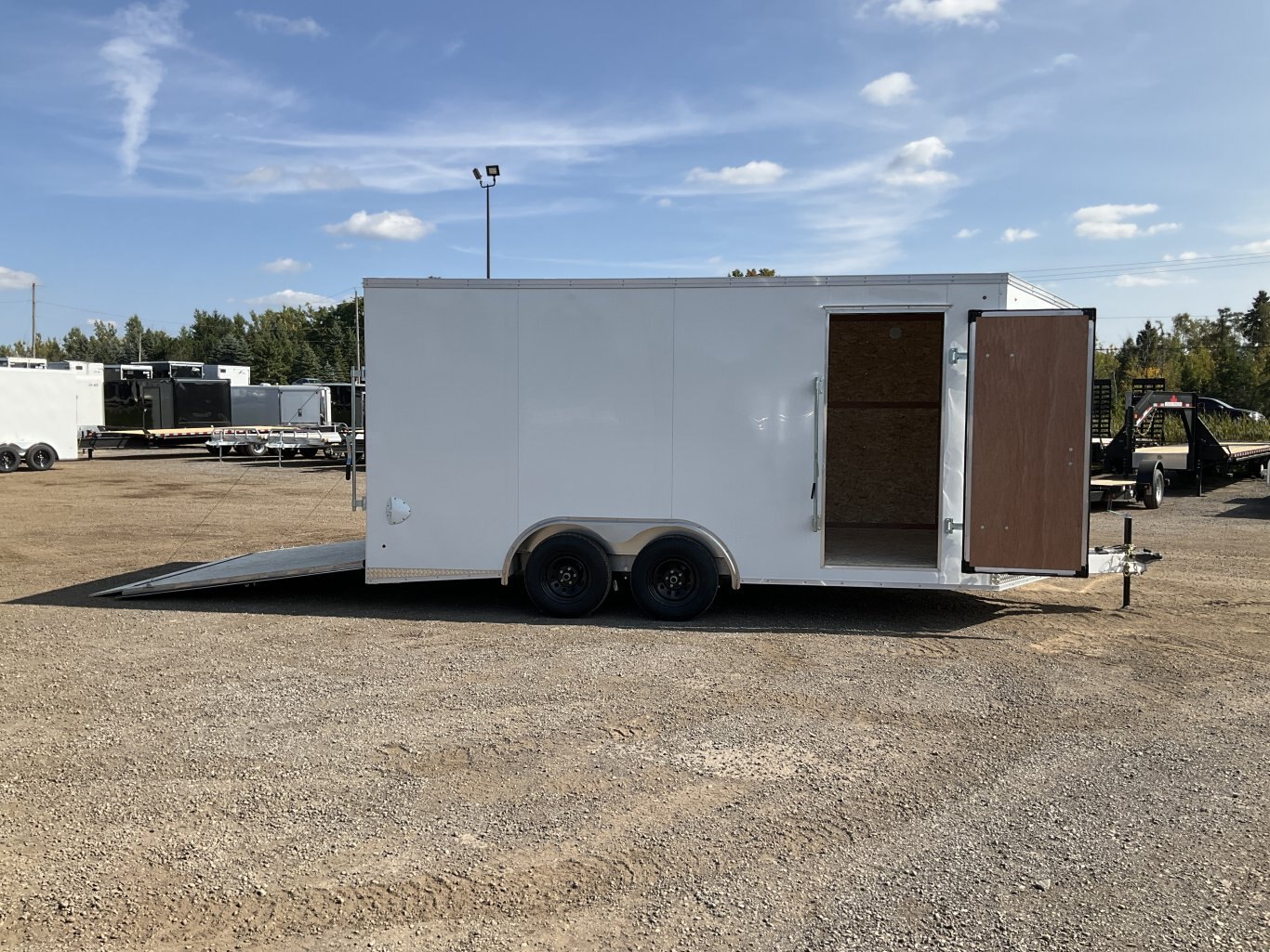7000LB GVWR, 2 3500LB Spring Drop Axles with EZ Lube Hubs, Electric Brakes on Both Axles, 15" Radial Tires, 34" Sloped V-Nose, 7' Tall, .030 White Screwless Exterior, 32" Side Man Door, Rear Ramp Door with Spring Assist, Integrated Beaver Tail, 3/8" Wood Lines Walls, 3/4" Rainblock Wood Floor, Seamless Aluminum Roof, 16" On Centre Walls/Floor/Roof, 2 Wall Vents, 12V Dome Light with Switch, 6 D-Ring Tie Downs, ATP Stone Guard, 2-5/16 Ball Coupler, A-Frame Tongue Jack with Sand Pad, Sealed LED Lighting