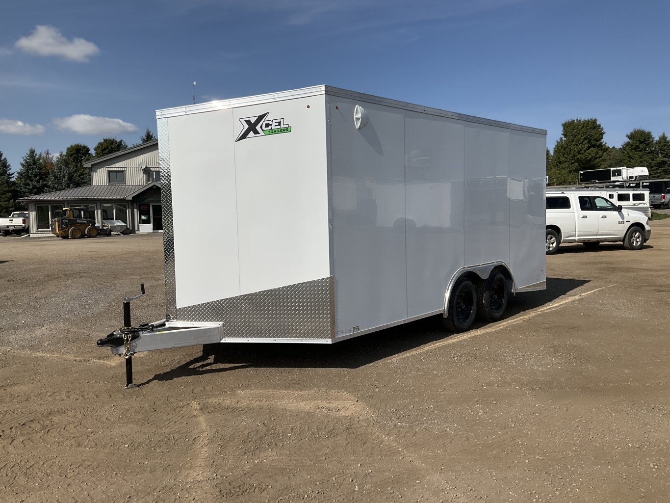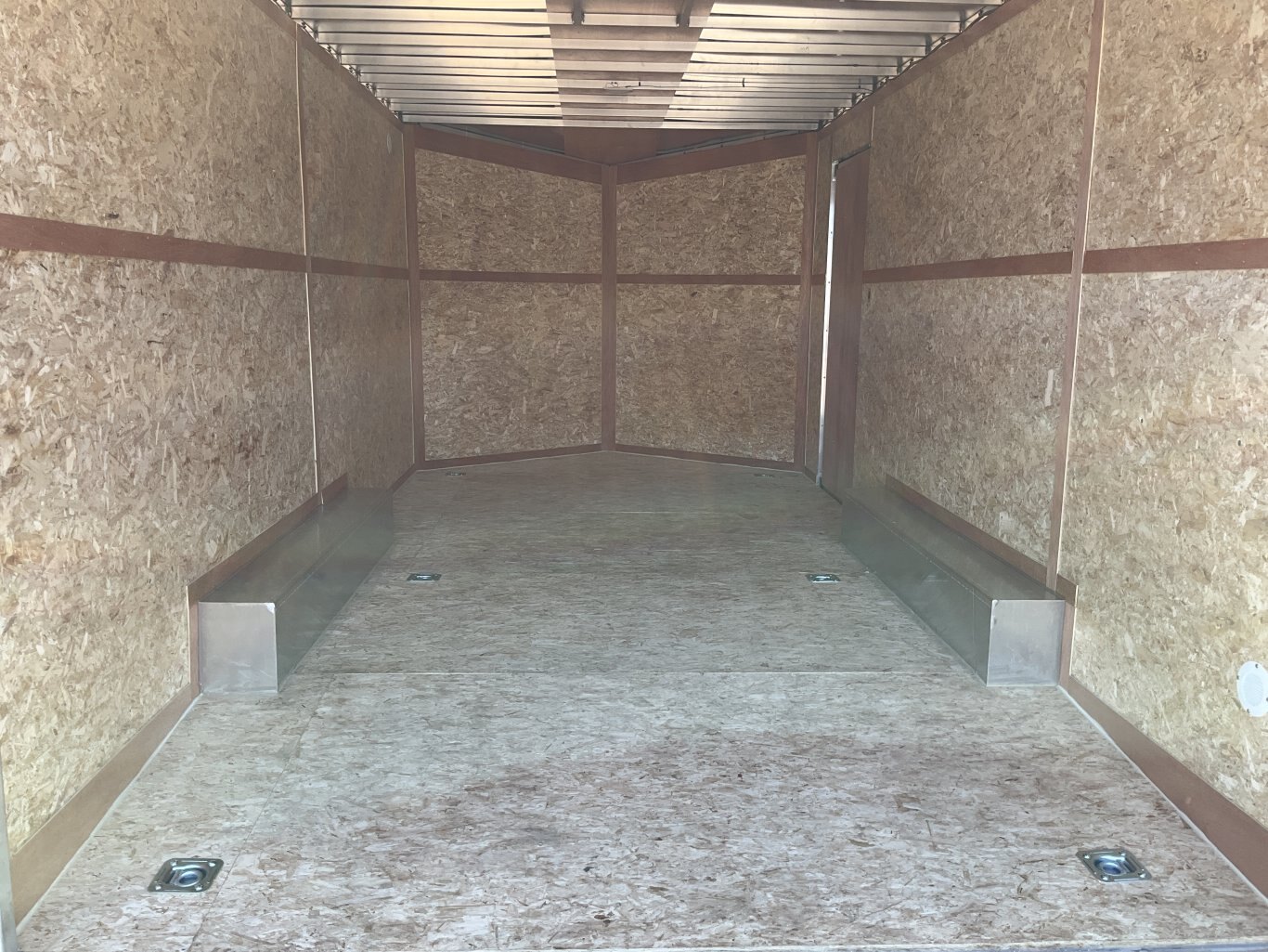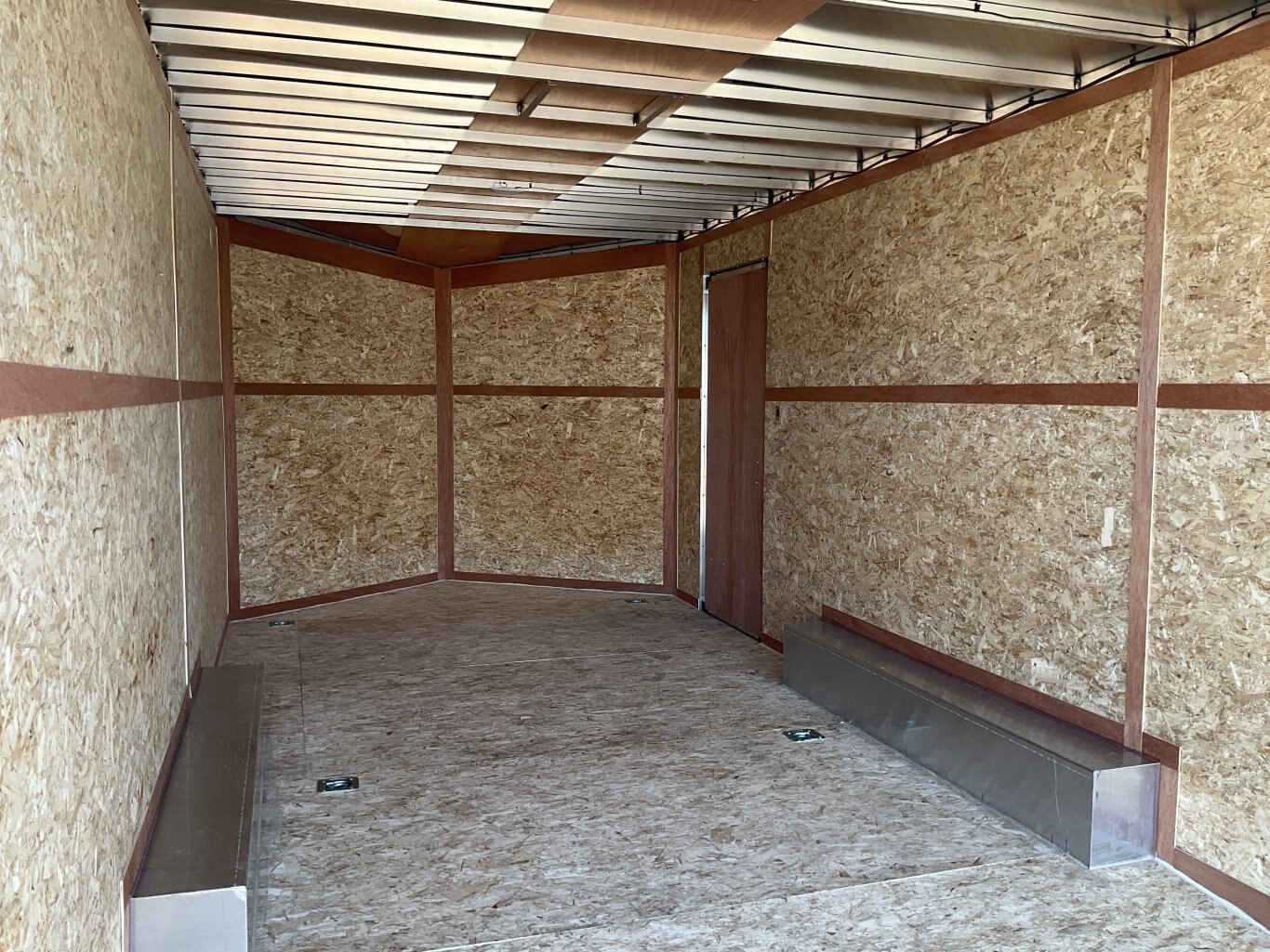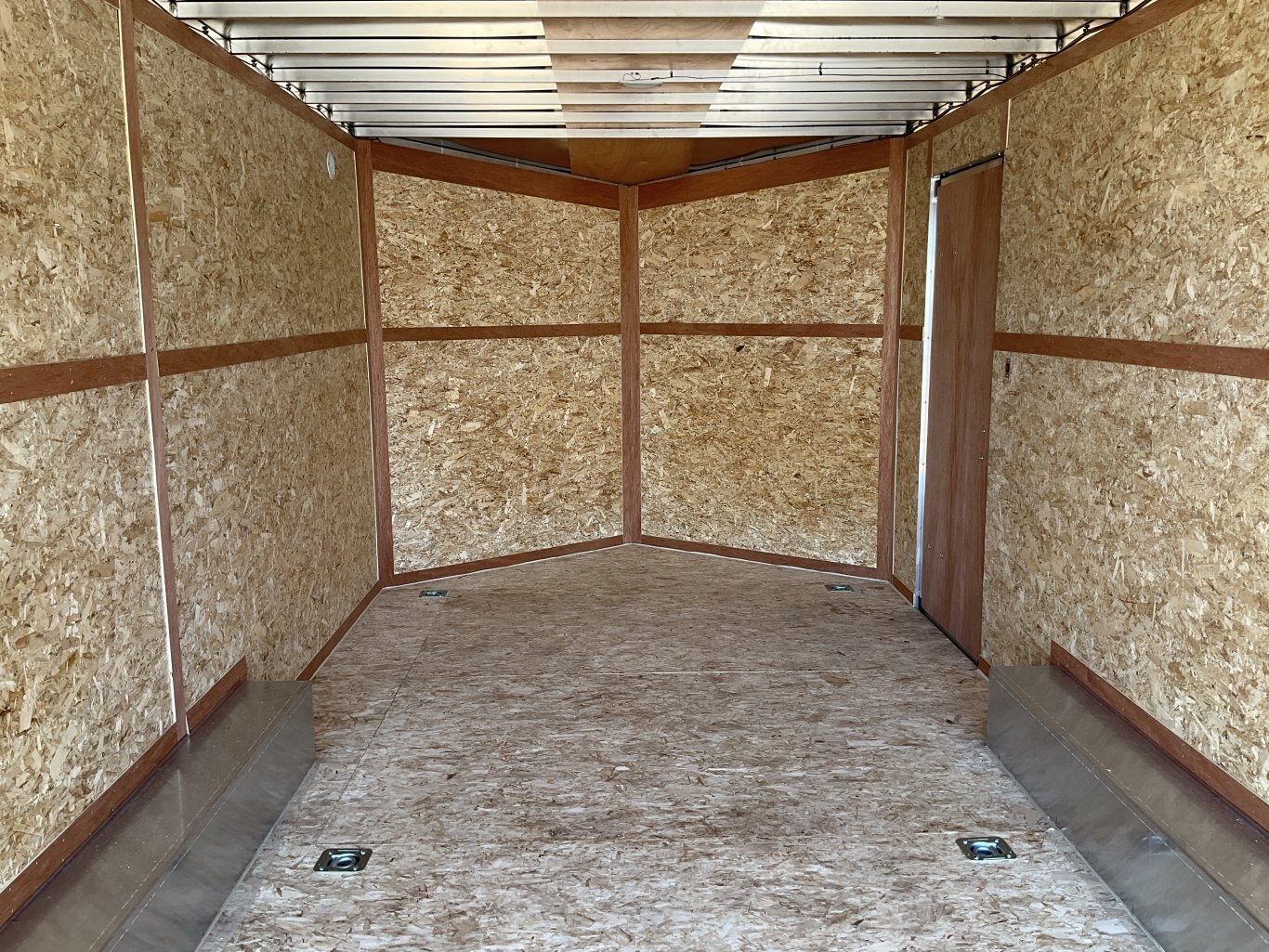 7000LB GVWR, 2 3500LB Spring Drop Axles with EZ Lube Hubs, Electric Brakes on Both Axles, 15" Radial Tires, 34" Sloped V-Nose, 7' Tall, .030 White Screwless Exterior, 32" Side Man Door, Rear Ramp Door with Spring Assist, Integrated Beaver Tail, 3/8" Wood Lines Walls, 3/4" Rainblock Wood Floor, Seamless Aluminum Roof, 16" On Centre Walls/Floor/Roof, 2 Wall Vents, 12V Dome Light with Switch, 6 D-Ring Tie Downs, ATP Stone Guard, 2-5/16 Ball Coupler, A-Frame Tongue Jack with Sand Pad, Sealed LED Lighting