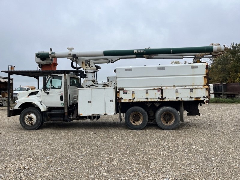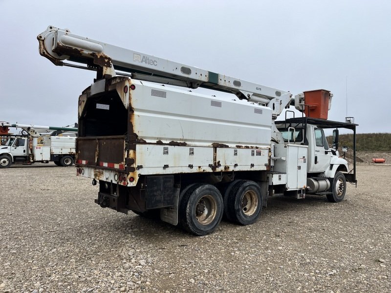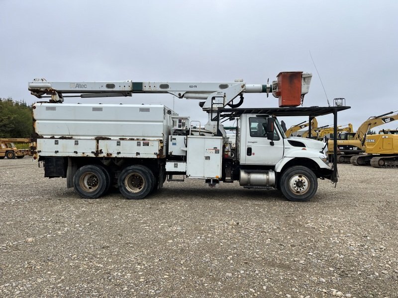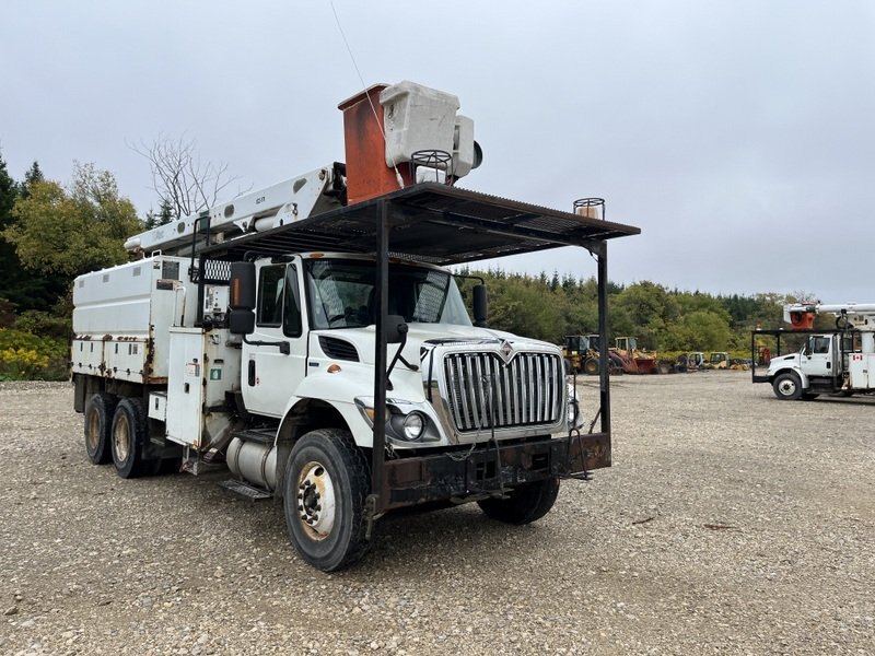 2011 International 7400 bucket truck is powered by Maxxforce diesel engine. Enclosed heated cab with A/C. Equipped with air ride seats. 2 wheel drive and automatic transmission with air brakes. Unit has an Altec LRV60-E70 boom having a 70’ reach giving it a 76’ working height. Odometer reads 248262km.