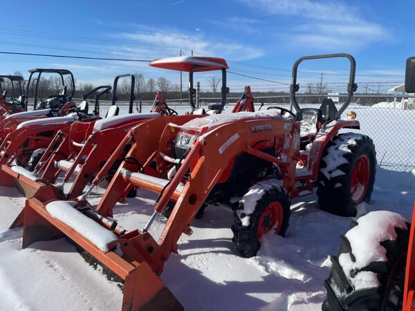 1400Hrs, on Ag Tires, one rear remote auxillary valve, category one three point hitch and 540 pto. Quick attach loader boom with skid steer quick attach 72" bucket