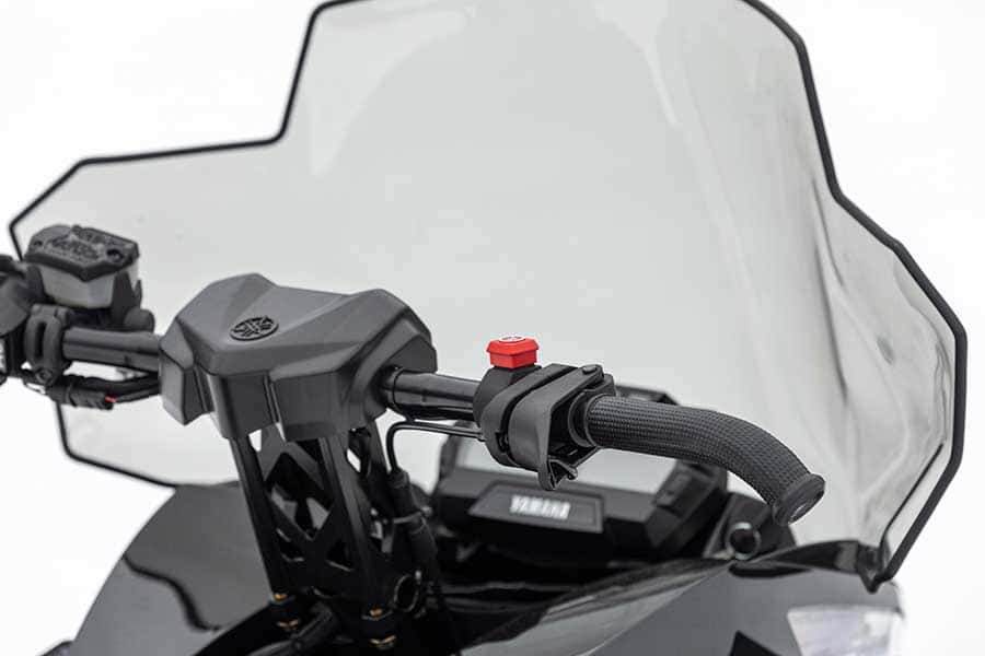- The handle bar controls feature a left hand switch cluster which allows for 'on the fly' access to the multi-step hand and thumb warmer adjusters. Information available on the multi-function gauge can be easily selected with a convenient toggle switch and the push button reverse gear switch is also located in the left hand cluster. The right side of the bar is clean with an ergonomically shaped throttle lever and simple, stand-alone emergency stop switch. The Hayes 'Stealth' brake cylinder is equipped with a composite brake lever providing great modulation for better feel and powerful stopping performance.