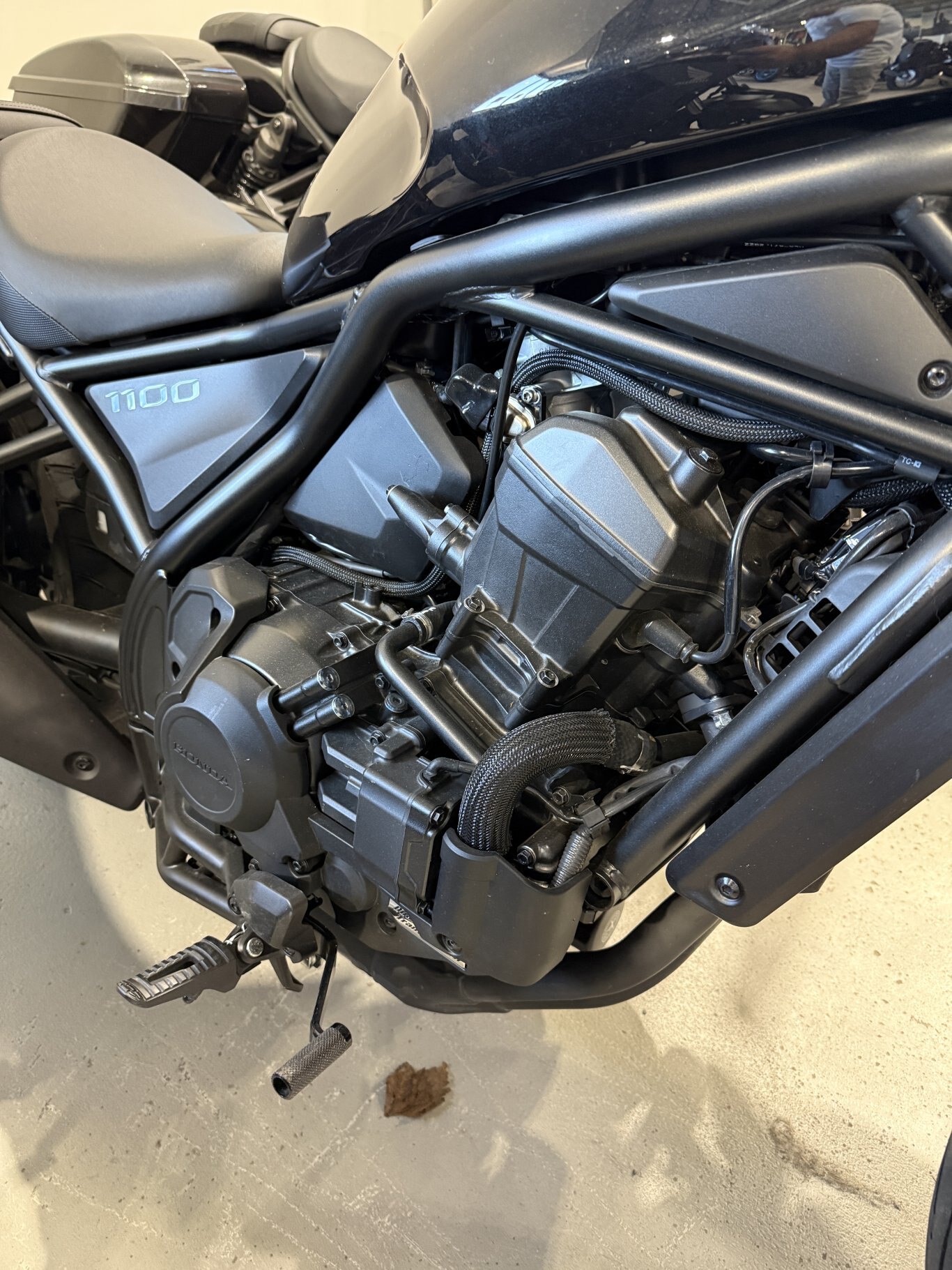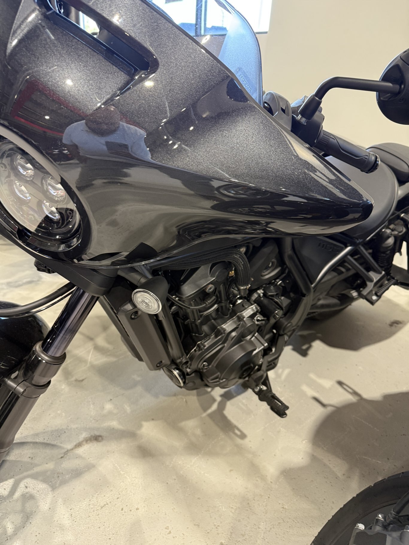 The Rebel 1100 Touring uses a modified version of the 1,084 cc, liquid-cooled engine that powers the acclaimed Africa Twin, ensuring arm-pulling acceleration from low speeds and impressive top-end performance. The engine’s parallel-twin configuration and Unicam cylinder head contribute to the bike’s overall low centre of gravity and optimum mass centralization, which help produce stable, road-hugging, confident handling.