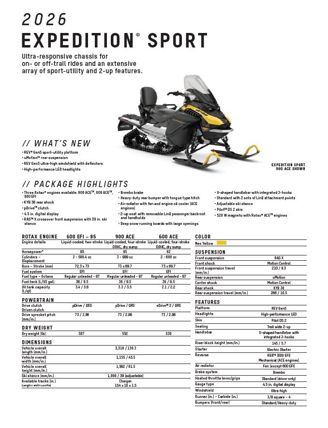 2026 Ski-Doo Expedition Sport 600 EFI Charger 1.5" E.S.