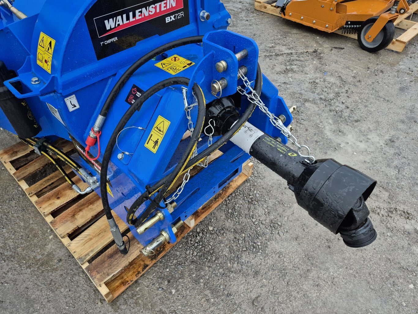 2023 Wallenstein BX72R wood chipper, 7 inch chipping capacity, Dual hydraulic roller feed, 540 pto, 3 point hitch, Manual chute rotation & deflector, As New Condition