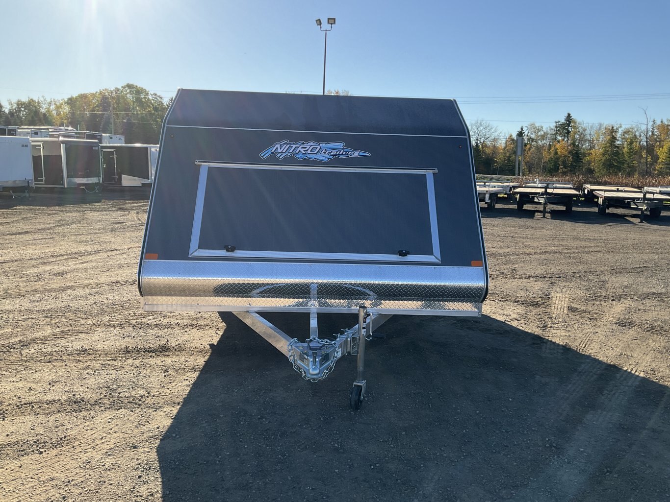 2990LB GVWR, 3500LB Torsion Axle, 10" Fat Boy Tires, Galvanized Wheels, .030 Charcoal Screwless Exterior, Side Man Door with Step, 32x72 Front Access Door, Rear Ramp Door with Hingeless Flip, 5/8" Water Resistant Decking, 12" Kick Panel, Full Length Slide Track in Floor, 2 Adjustable Ski Bars, 2 D-Rings for Slide Track, Ski Guide Package, 2 Wall Vents, 12V LED Dome Light with Switch, ATP Gravel Guard, Swivel Wheel Tongue Jack, Sealed Wiring and LED Lighting