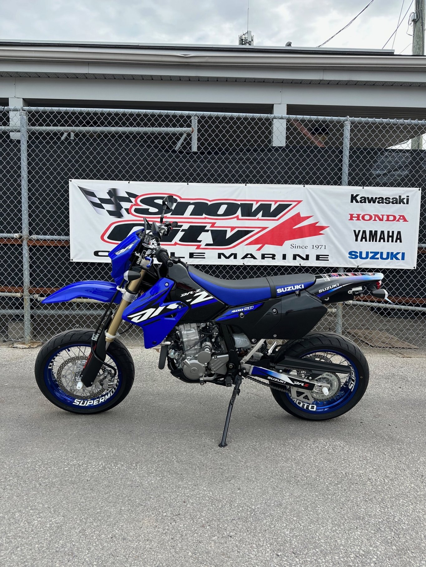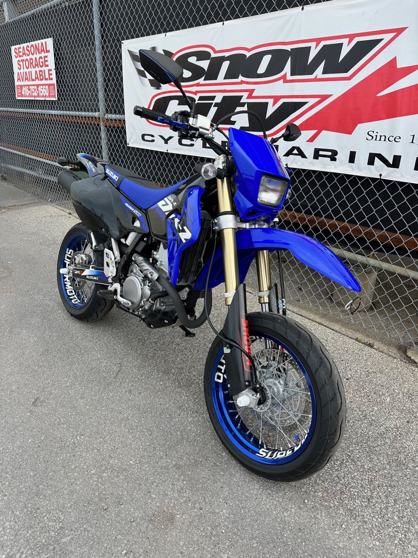 THE ESSENCE OF SUPERMOTARD RIDINGThe DR-Z400SM welcomes you to the exhilarating world of SuperMoto riding with cutting-edge dual-purpose bike design and stylish, functional top-grade equipment that captures the essence of free-spirited street riding pleasure. The Suzuki DR-Z400SM is a street-legal bike for serious dirt bike enthusiasts. It’s not uncommon to take the SuperMoto down twisty forest trails as well as tight canyon corners. Its 398cc liquid-cooled, four-stroke engine provides strong low-rpm torque and crisp throttle response for any of these occasions. The key difference between the DR-Z400SM and the DR-Z400S is the inverted forks. Inverted front forks contribute to less unsprung weight and improved overall handling. Fun to ride whatever street, avenue or highway you’re headed for. |
