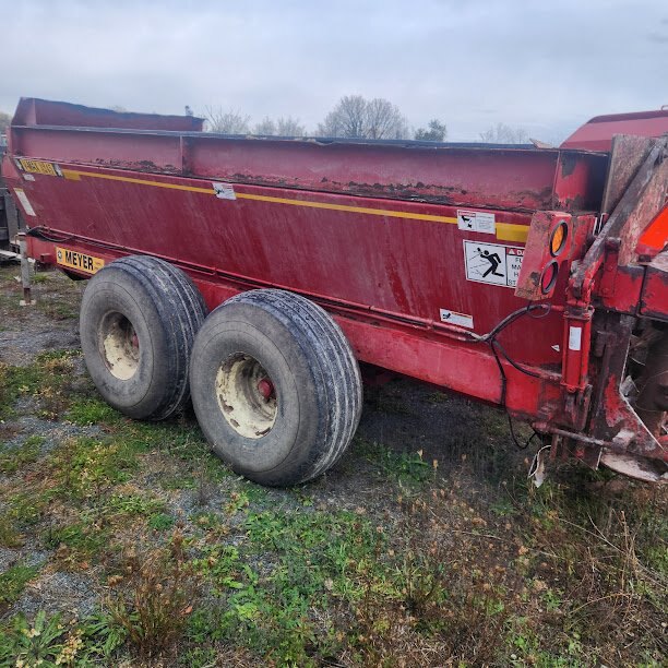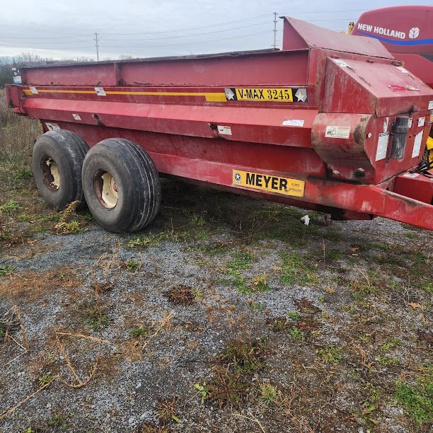 2016 Meyer V-Max 3245 manure spreader, Optional 3rd Auger, 9 inch height extensions, 450 bushel/292 cubic foot capacity, Tandem axle with 16.5x16.1 flotation tires, 540 pto, Rear unload with vertical beaters, Light kit, Splashguard