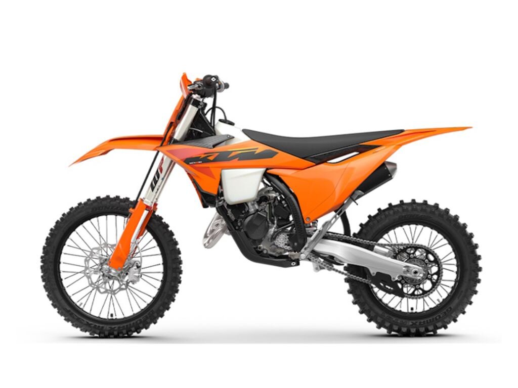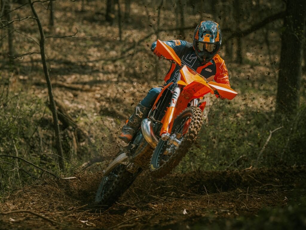 Two years of hard-charging R&D have gone into the making of the 2025 KTM 125 XC. That\'s right, we meant Racing and Development. A reworked, lighter frame, updated engine mounts, and a new durable chain glide - to name a few - make the 2025 KTM 125 XC the leader in the 2-Stroke GNCC screamer class.
