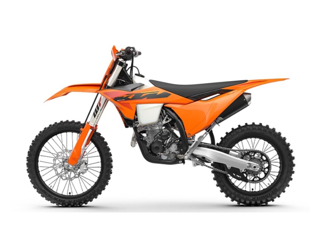 START STRONGPerfectly filling the gap between the KTM 250 XC-F and the powerhouse KTM 450 XC-F, the lightweight KTM 350 XC-F powerplant rules the roost in a class of its own. Designed and tuned to provide the best performance and handling characteristics possible, the DOHC engine delivers endless mid-range and the top-end power together with the benefits of mass centralization and ideal anti-squat behavior. With 450-rivalling performance and an overall engine weight of only 60.6 lb, you\'ll leave the competition with more than a little mud on the face.