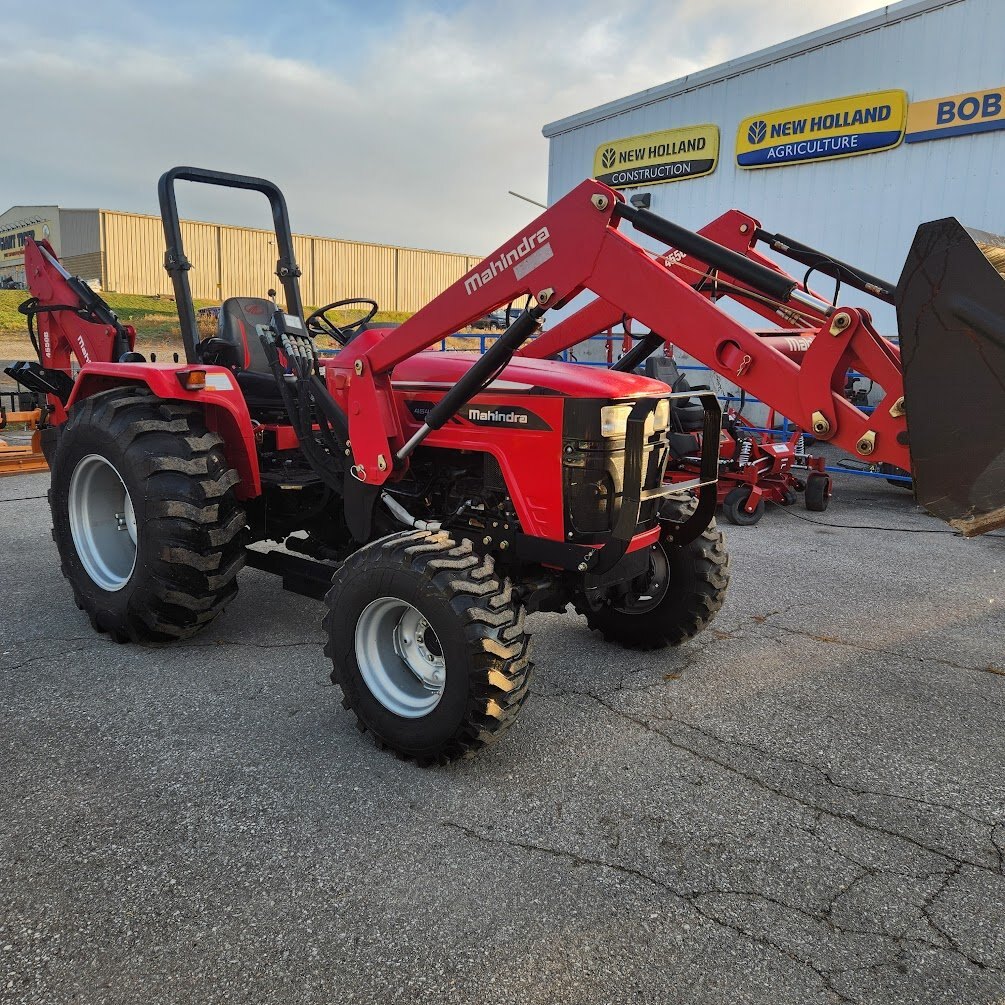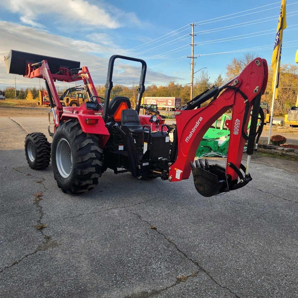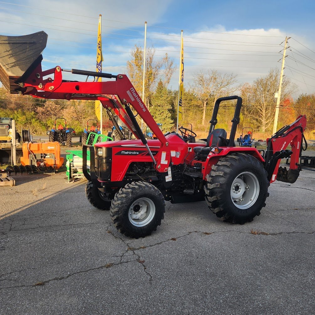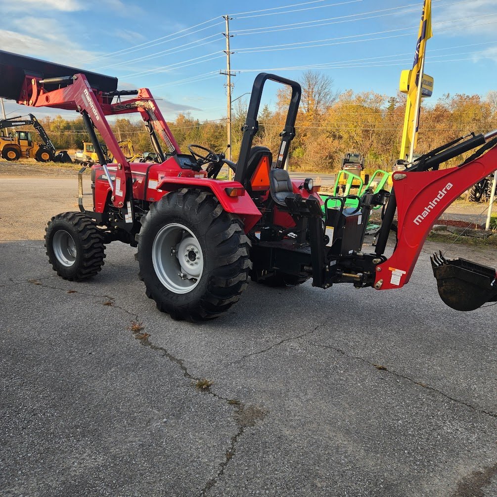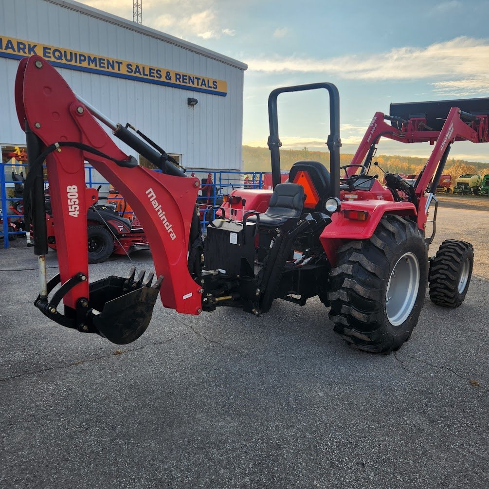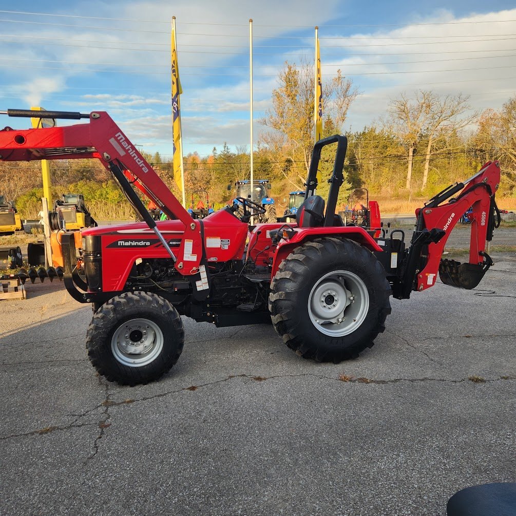 2021 Mahindra 4540 Tractor, 40 horsepower, 4 cylinder diesel engine, four wheel drive, 8x2 gear transmission, Mahindra loader with skidsteer quick attach bucket, Mahindra backhoe with bucket, industrial tires, quick start glow plugs, block heater, ONLY 100 Hours, Powertrain warranty until July 2028