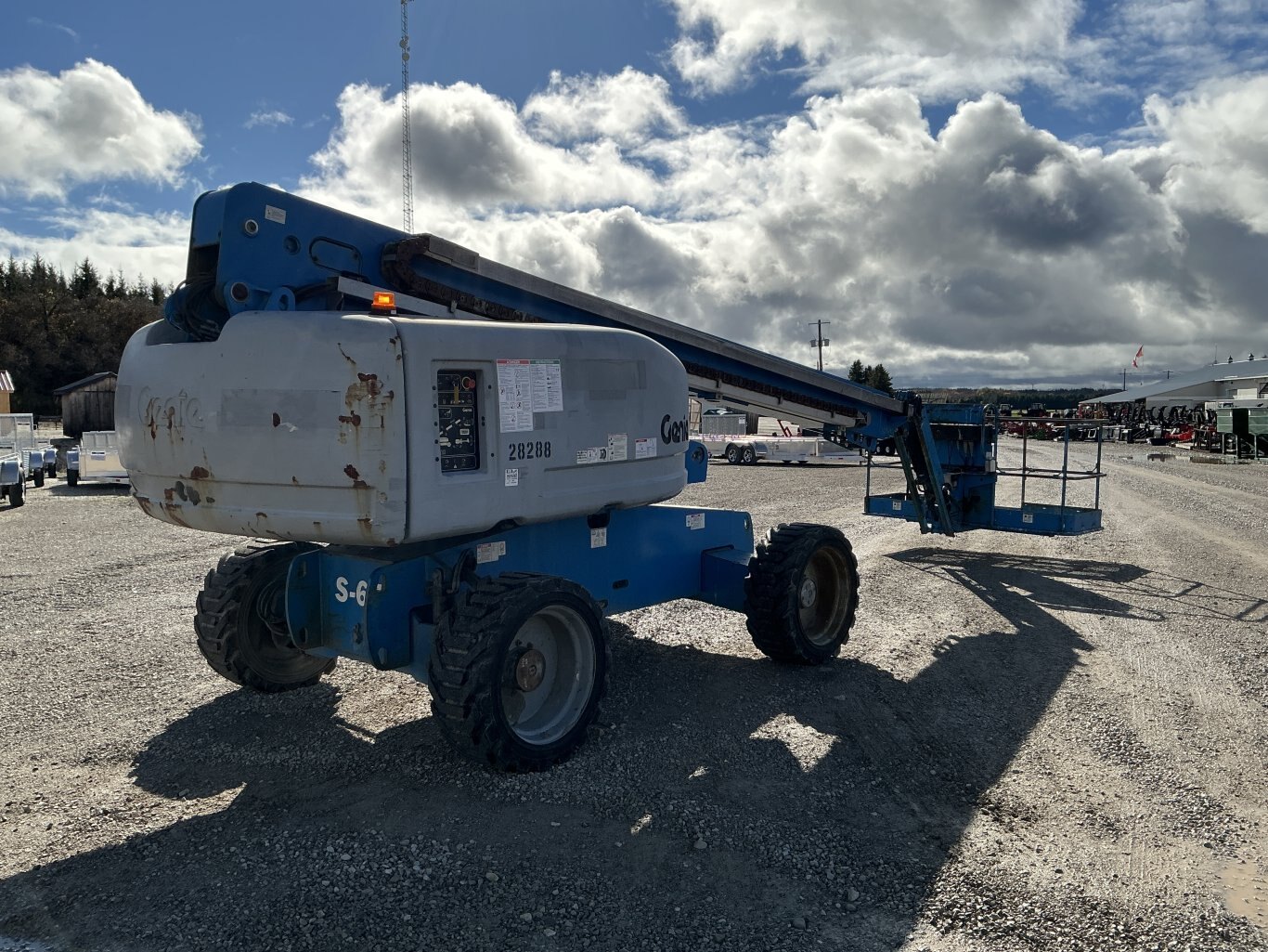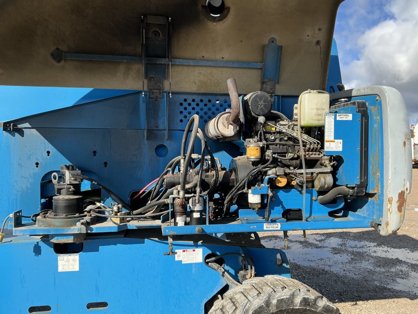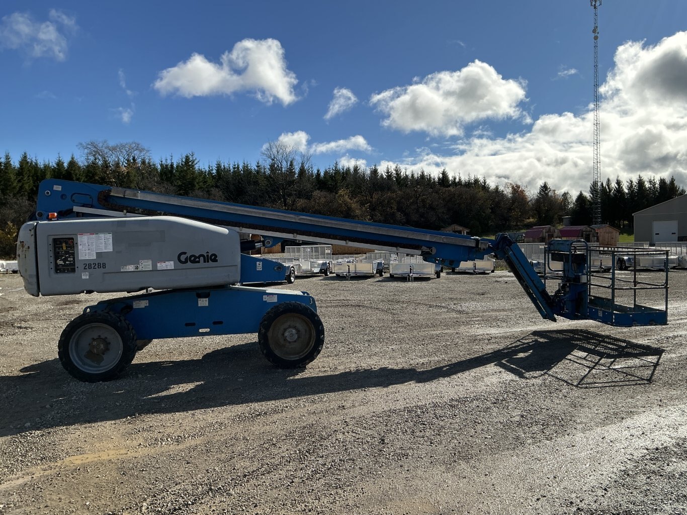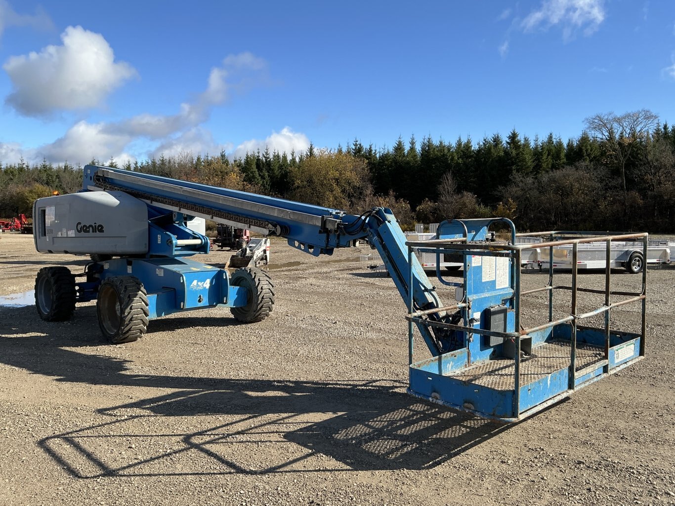 2012 Genie S-65 straight boom with jib. This boom lift has a platform height of 65 feet giving 71 feet working height and 56 feet outreach. 4WD driveline and powered by a Perkins diesel engine. Machine weighs around 23,000 lbs. Hour meter shows 4418.