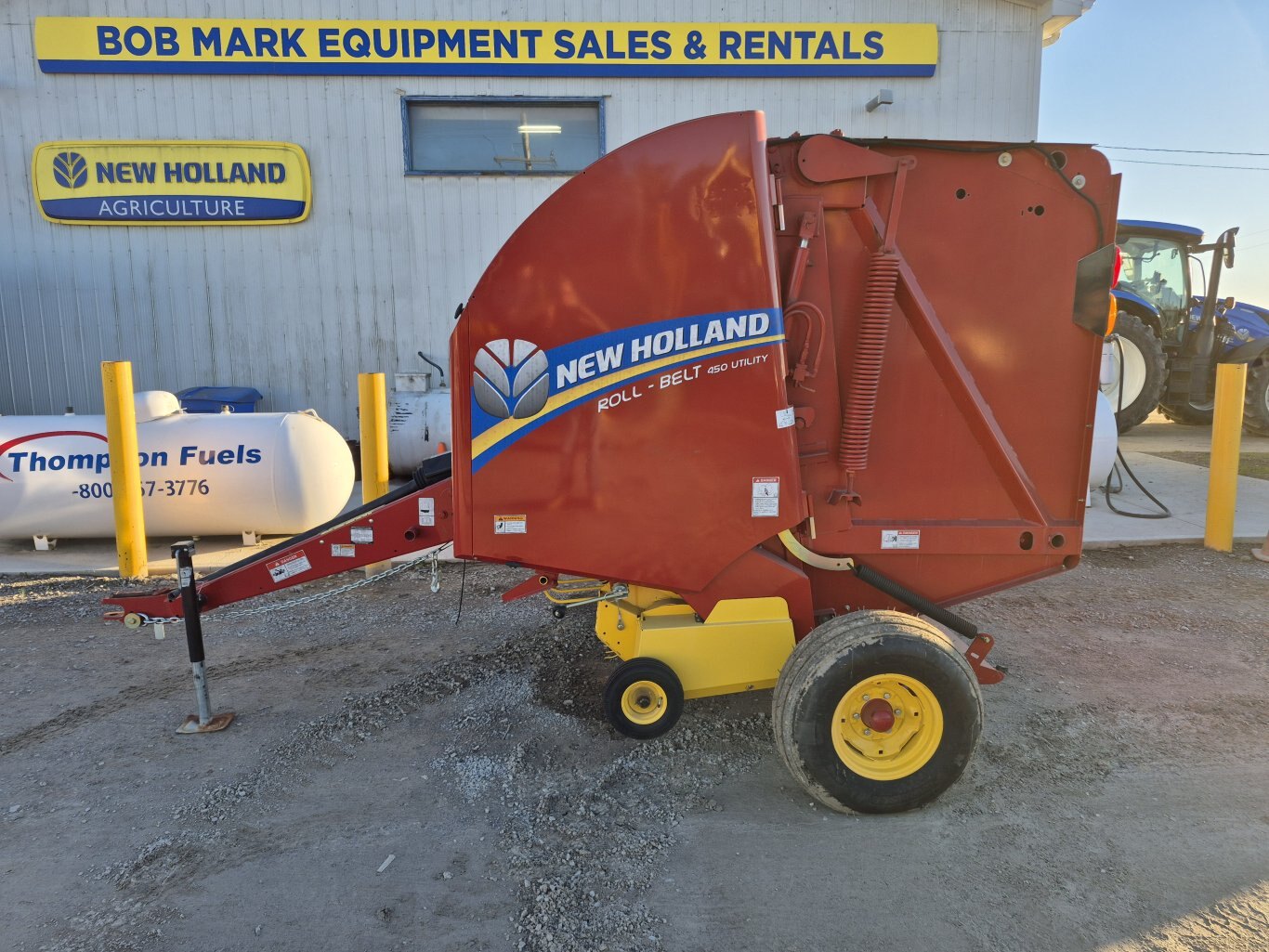 Old Stock Brand New 2022 New Holland Roll-Belt 450 Utility round baler, 4x5 maximum bale size, Laced belts, Standard twine tie, 11L-14 tires, Pickup gauge wheels, Full Warranty, $27900 Cash Price, Low Rate Financing (0% for 3 years/1.99% for years/2.99% for 5 years) also available at $30900 price