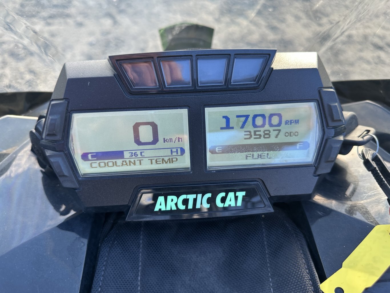 Deluxe Digital GaugeThis dual configurable LCD screen gauge allows to you check all the vital information about your snowmobile and more. 14 different readings to be exact. There’s an odometer, speedometer, max RPM, 2 trip meters, engine hours, low oil light, coolant temperature, exhaust temperature, intake air temperature, battery voltage, fuel level, clock, reverse indicator, hand warmer and thumb warmer. |