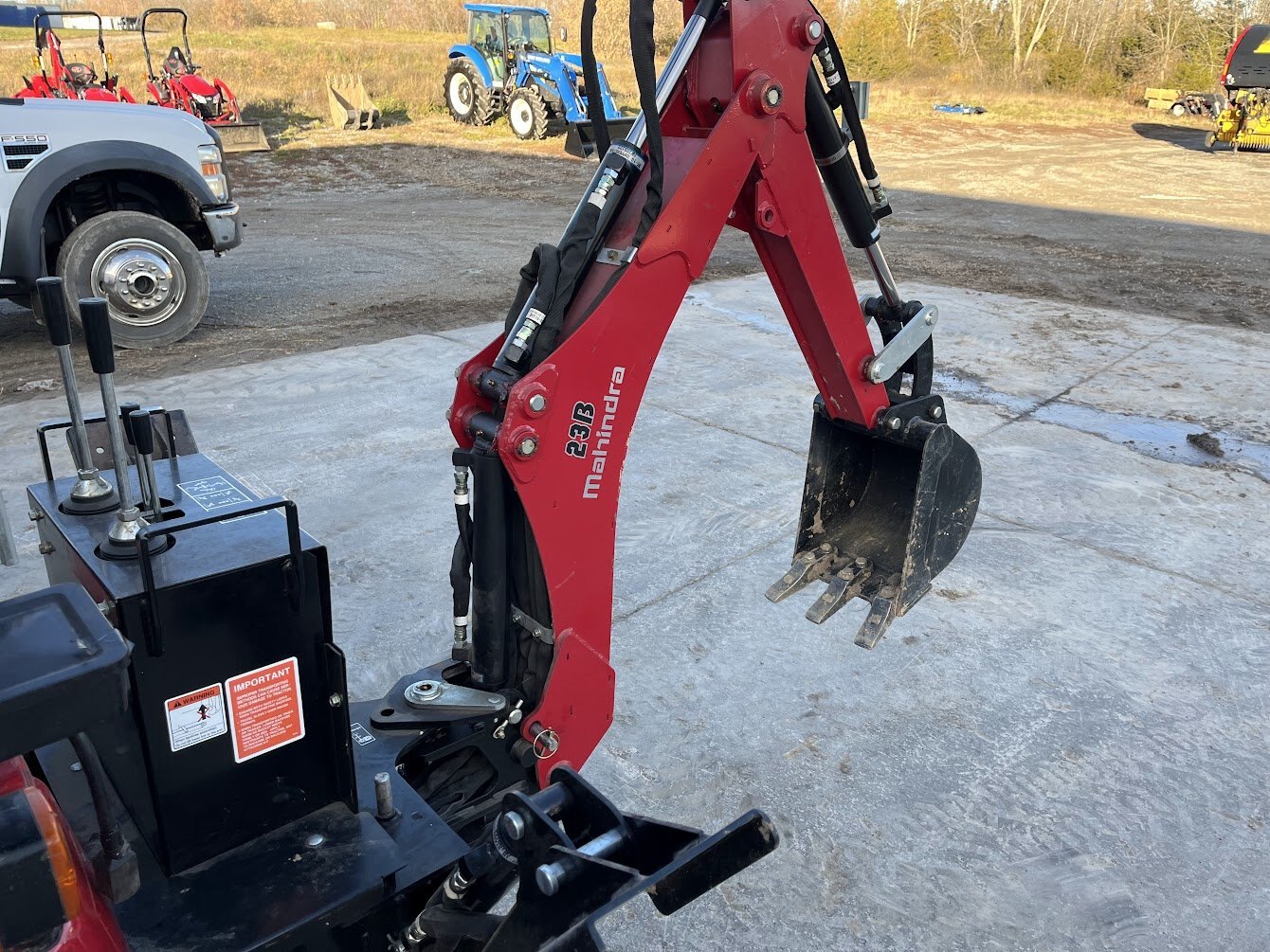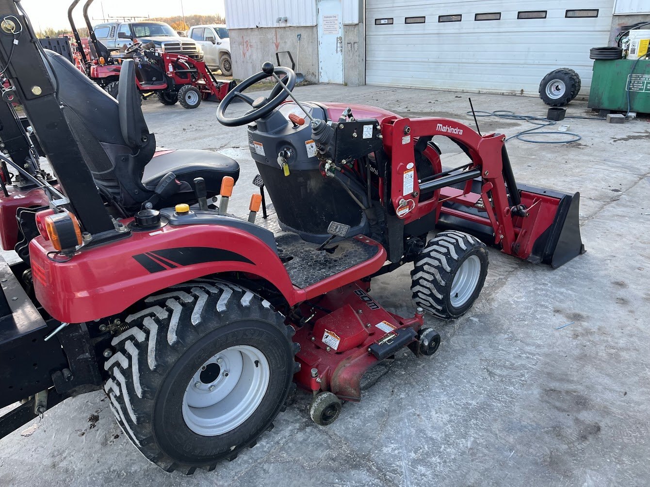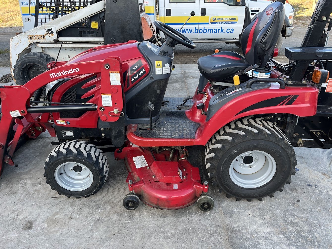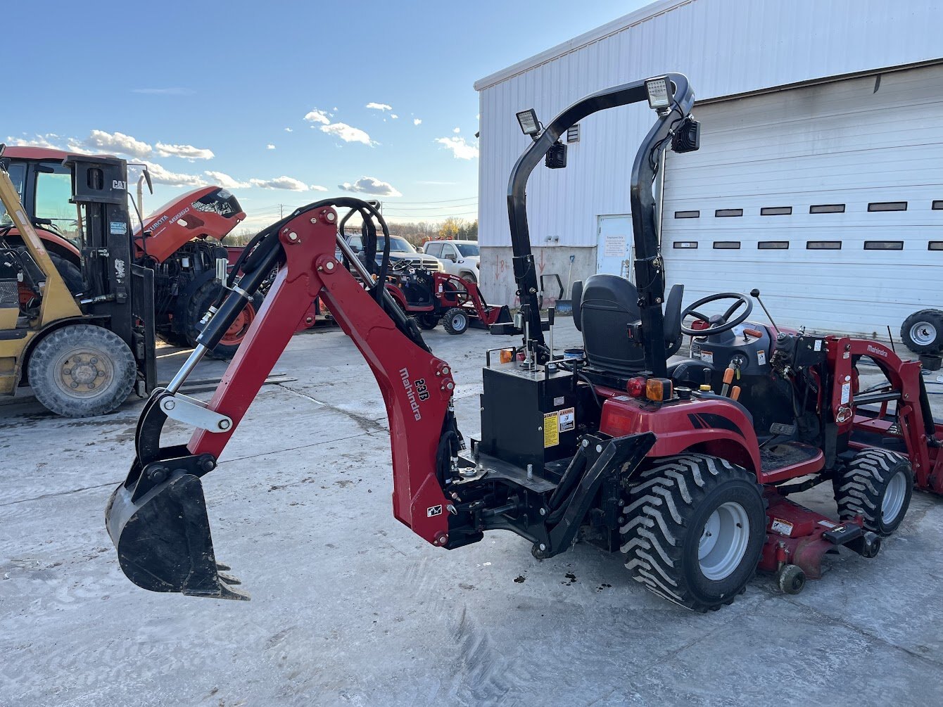 2019 Mahindra eMax 20S tractor loader backhoe & mid-mount mower deck, 19.4 engine horsepower, 14.2 pto horsepower, Four wheel drive, 2-range Hydrostatic transmission, R4 Industrial tires, Mahindra 23L loader with universal skidsteer quick-attach, Mahindra 23B backhoe, Mahindra 50M 54 inch mid-mount mower deck, Folding roll bar, 900 hours, Powertrain Warranty till November 15 of 2026, COMING