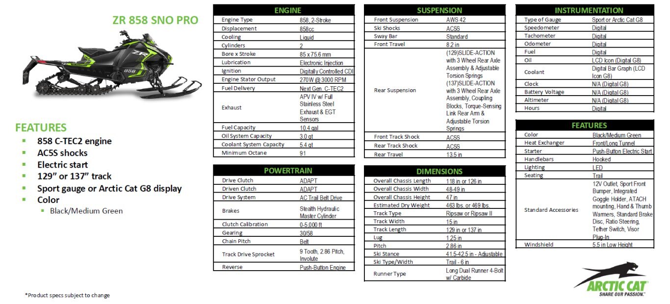 2026 ARCTIC CAT NEW ZR 858 SNO PRO 129" ES G8 Gauge - PLUS 1 YEAR EXTENDED WARRANTY