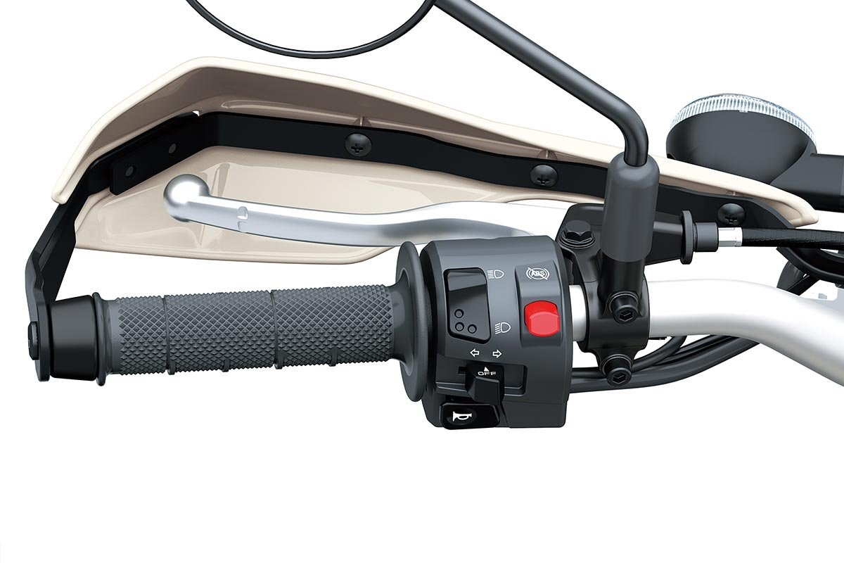 - Aluminum skid plate, hand guards, lightweight tapered aluminum handlebar