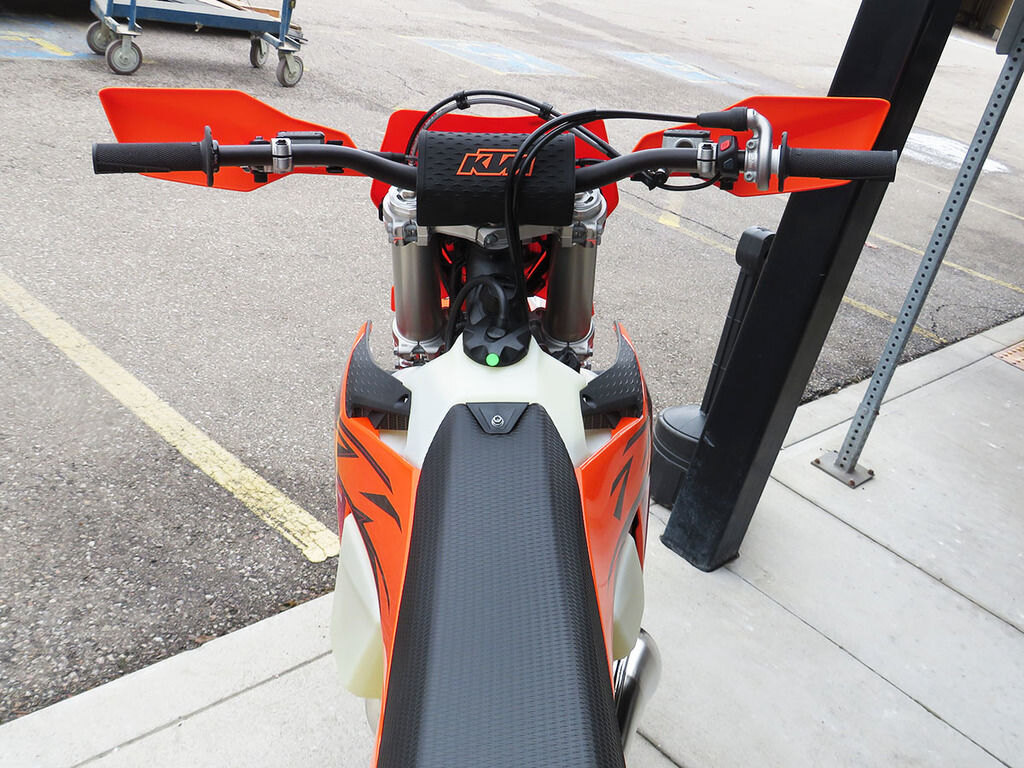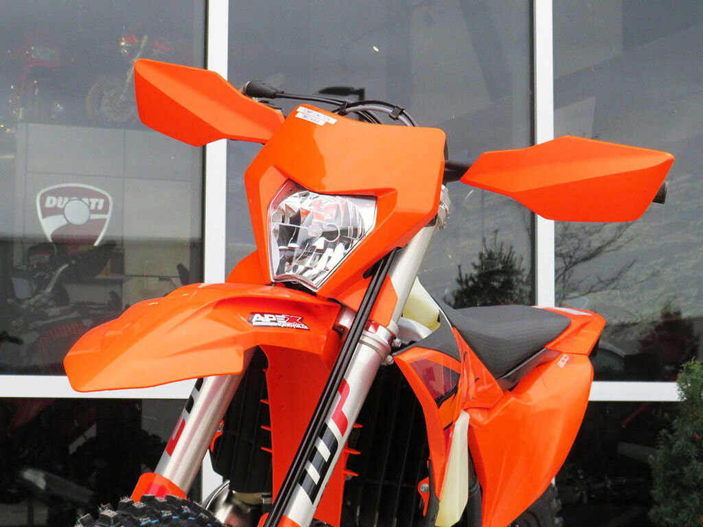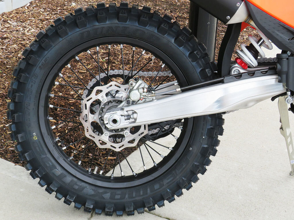 On the chargeSpecifically engineered for longitudinal rigidity, the KTM Enduro range is engineered around a gloss-black powder-coated frame providing exceptional rider feedback, energy absorption, and high-speed stability. This is achieved by repositioning the rotating masses in the frame along with a forged steering head connection. The footrest mounts also feature a slim design for less risk of hooking up. And when the ride comes to an end, a forged one-piece side stand ensures your enduro weapon stands proud.