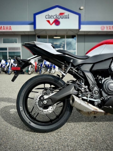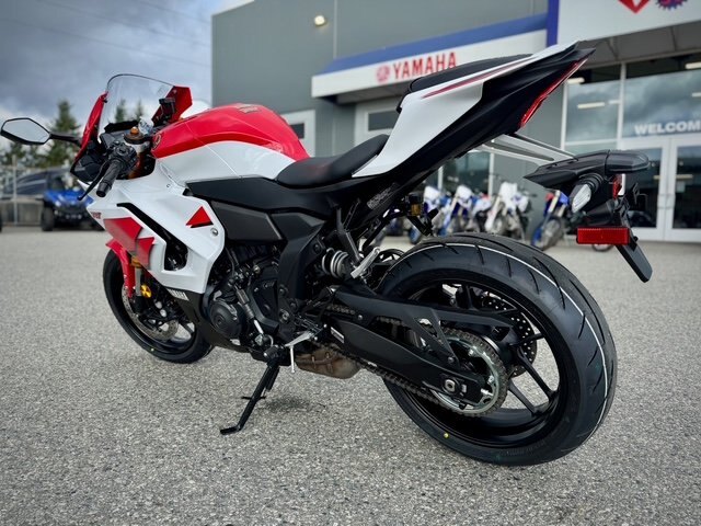 The 2026 YZF-R7 closely bridges the gap between he YZF-R3 and YZF-R9 with a number of updates, aligning itself with it's bigger siblings while providing real world performance in a middle weight package. Updated R-World styling, suspension, steering geometry, and YCC-T throttle along with a full electronic suite make the R7 an ideal machine, on and off the track.